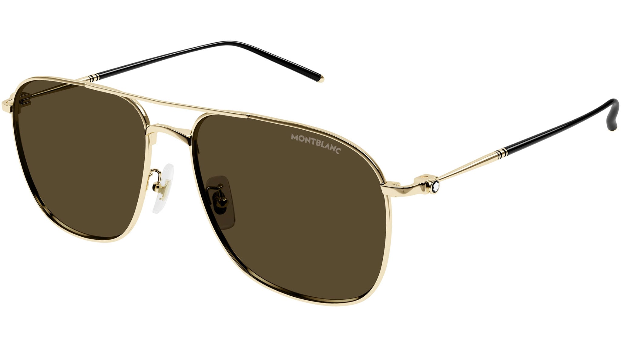 Occhiali da sole Montblanc MB0417SA 003 uomo con montatura aviatore in titanio oro chiaro lucido e lenti marrone tinta unita. Linea: CN Capsule. Codice modello: MB0417SA. Codice colore: 003. Made in Japan. Rivenditore autorizzato Montblanc online. Gli occhiali vengono consegnati con custodia e accessori originali e sono coperti dalla garanzia ufficiale di 12 mesi del produttore.