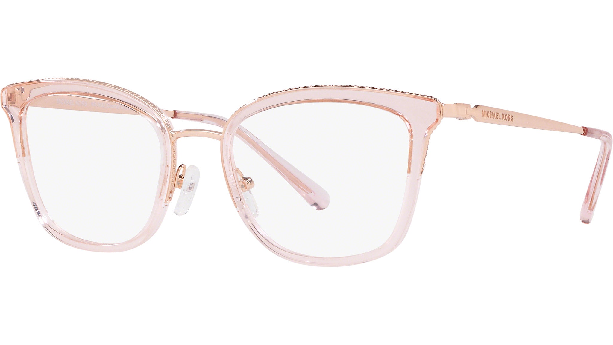 Montatura per occhiali da vista Michael Kors donna modello 3032 Coconut Grove full rim in metallo oro rosa / rosa trasparente con lenti demo base 4. Naselli regolabili. Linea: Sexy. Codice brand: 0MK3032. Codice colore: 3417. Rivenditore autorizzato online Michael Kors Eyewear. Ogni prodotto Michael Kors viene consegnato con astuccio originale e accessori ed è coperto da garanzia del produttore di 12 mesi.