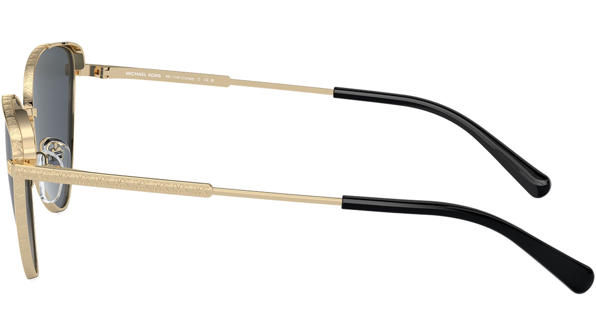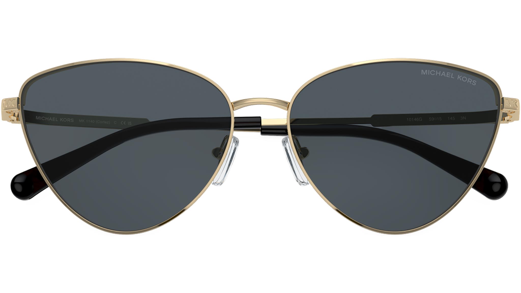 Occhiali da sole donna Michael Kors Cortez modello 1140 full rim in metallo oro chiaro con lenti grigio scuro solido base 4. Naselli regolabili. Linea: Modern. Codice brand: 0MK1140. Codice colore: 10146G. Rivenditore autorizzato online Michael Kors Eyewear. Ogni prodotto Michael Kors viene consegnato con astuccio originale e accessori ed è coperto da garanzia del produttore di 12 mesi.