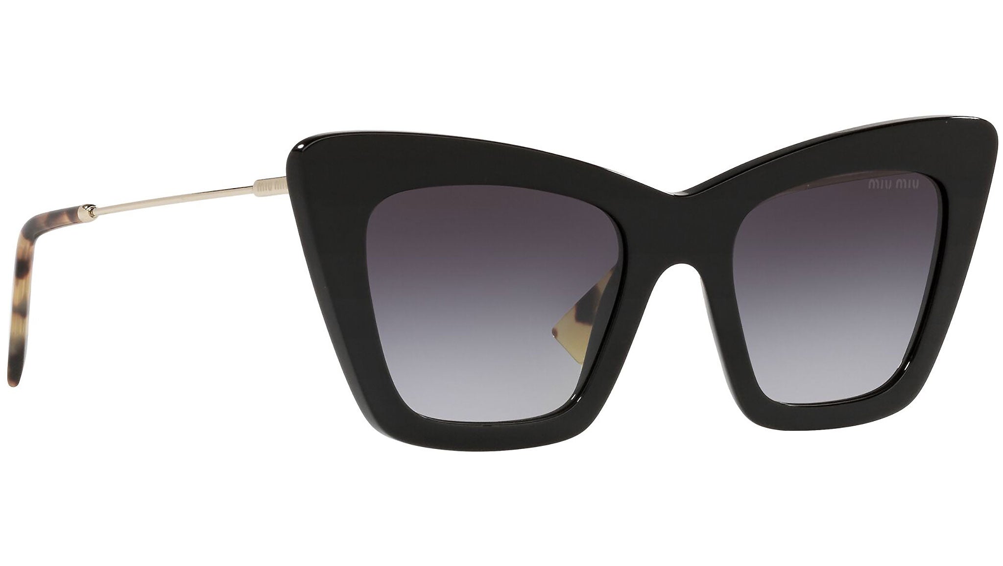 Occhiali da sole Miu Miu modello MU 01WS variante colore 1AB5D1 nero, con lenti color grigio scuro. Miu Miu offre creazioni uniche, in cui la costante ricerca stilistica si combina perfettamente con la maestria artigianale della lavorazione. Le silhouette femminili e sinuose delle montature sono espressione di una ricchezza dei dettagli che rispecchia pienamente i codici stilistici e l’indiscusso talento del brand nell’unire il design non convenzionale ad un romanticismo dai rimandi retrò.