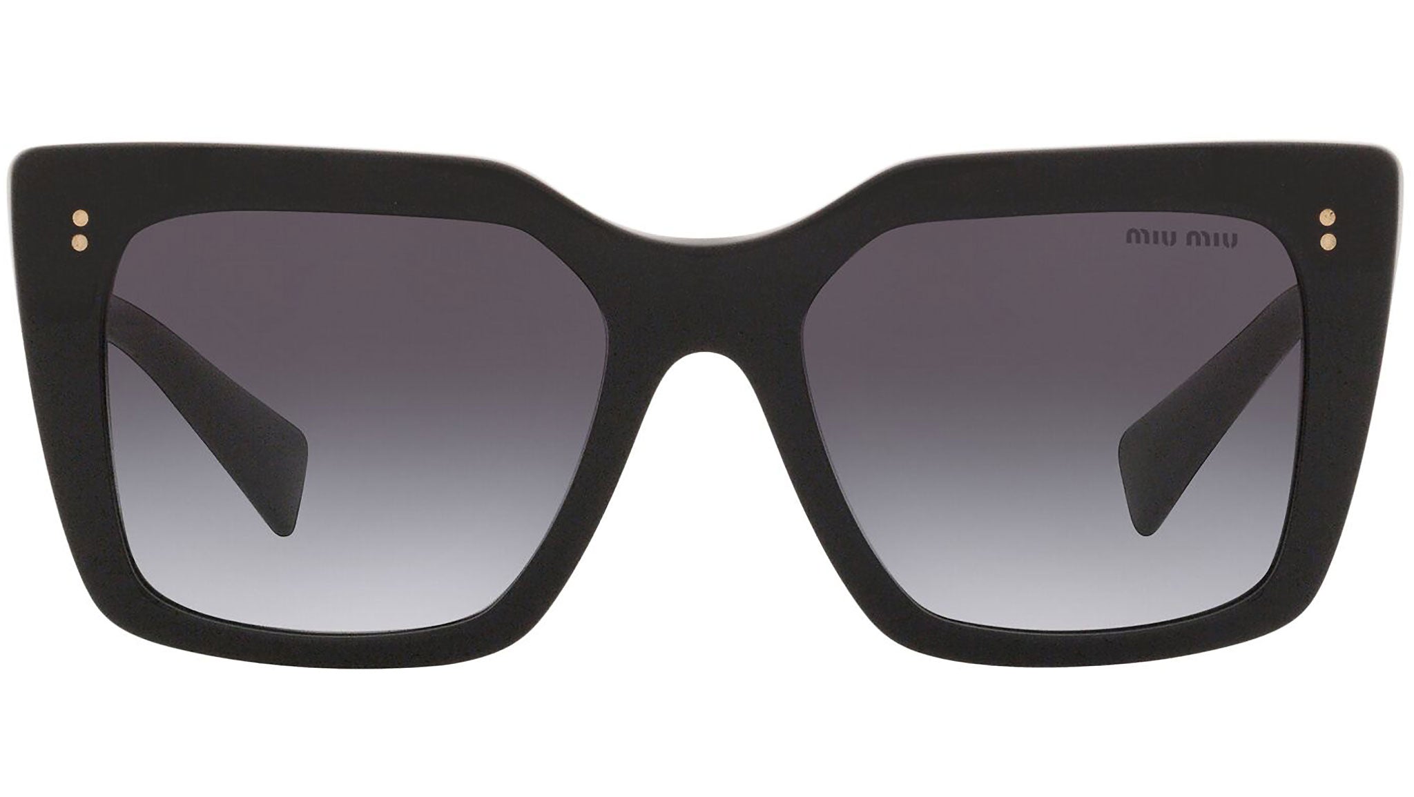 Occhiali da sole Miu Miu modello MU 02WS variante colore 1AB5D1 nero, con lenti color grigio sfumato. Miu Miu offre creazioni uniche, in cui la costante ricerca stilistica si combina perfettamente con la maestria artigianale della lavorazione. Le silhouette femminili e sinuose delle montature sono espressione di una ricchezza dei dettagli che rispecchia pienamente i codici stilistici e l’indiscusso talento del brand nell’unire il design non convenzionale ad un romanticismo dai rimandi retrò.