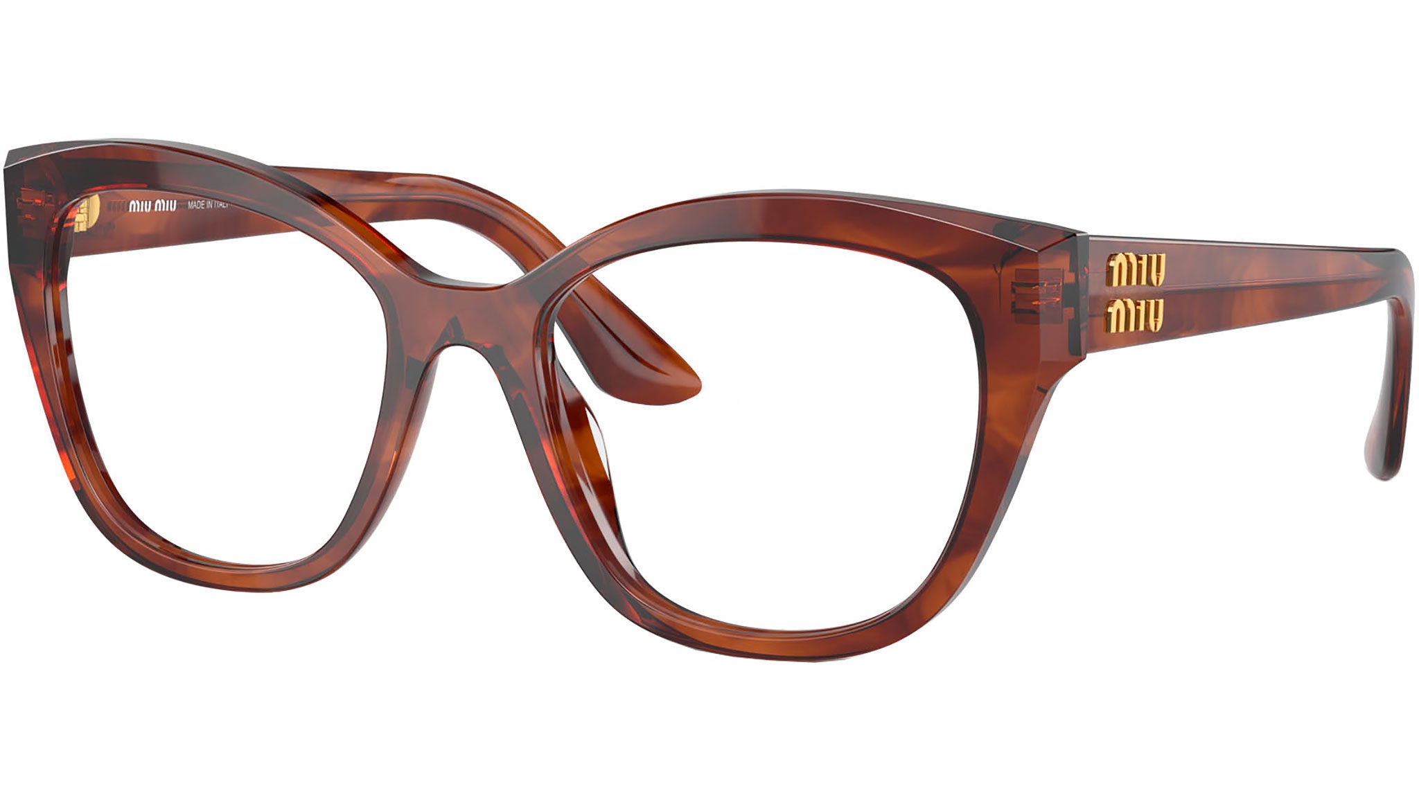 Montatura da vista Miu Miu modello MU 05XV codice colore 11Q1O1 tabacco striato in acetato e lenti demo. Miu Miu offre creazioni uniche, in cui la costante ricerca stilistica si combina perfettamente con la maestria artigianale della lavorazione. Le silhouette femminili e sinuose delle montature sono espressione di una ricchezza dei dettagli che rispecchia pienamente i codici stilistici e l’indiscusso talento del brand nell’unire il design non convenzionale ad un romanticismo dai rimandi retrò.