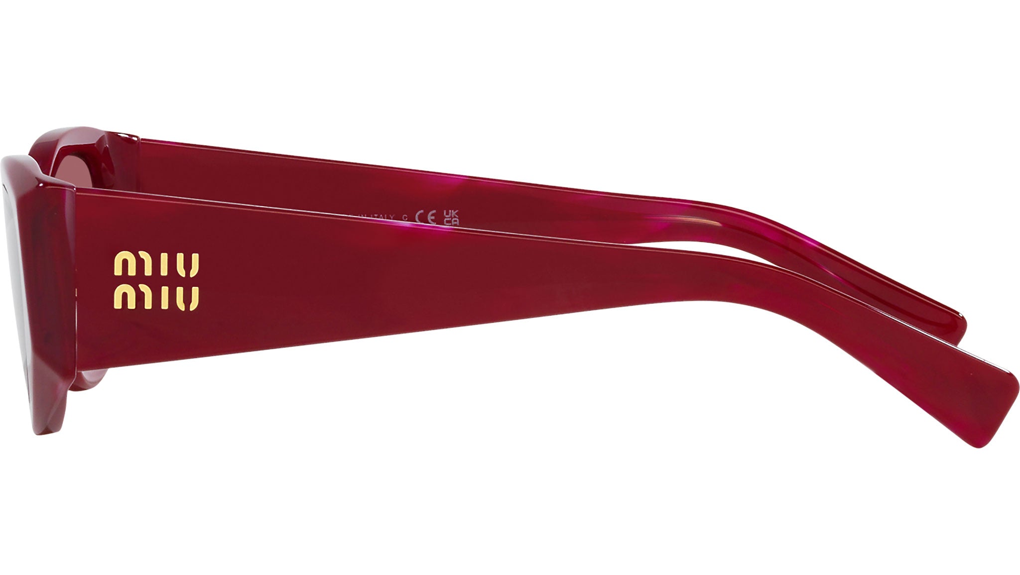 Occhiali da sole Miu Miu modello MU 06YS codice colore 16H08S con montatura color bordeaux a strisce in acetato e lenti color violetto scuro. Miu Miu offre creazioni uniche, in cui la costante ricerca stilistica si combina perfettamente con la maestria artigianale della lavorazione. Le silhouette femminili e sinuose delle montature sono espressione di una ricchezza dei dettagli che rispecchia pienamente i codici stilistici e l’indiscusso talento del brand nell’unire il design non convenzionale ad un romanticismo dai rimandi retrò.