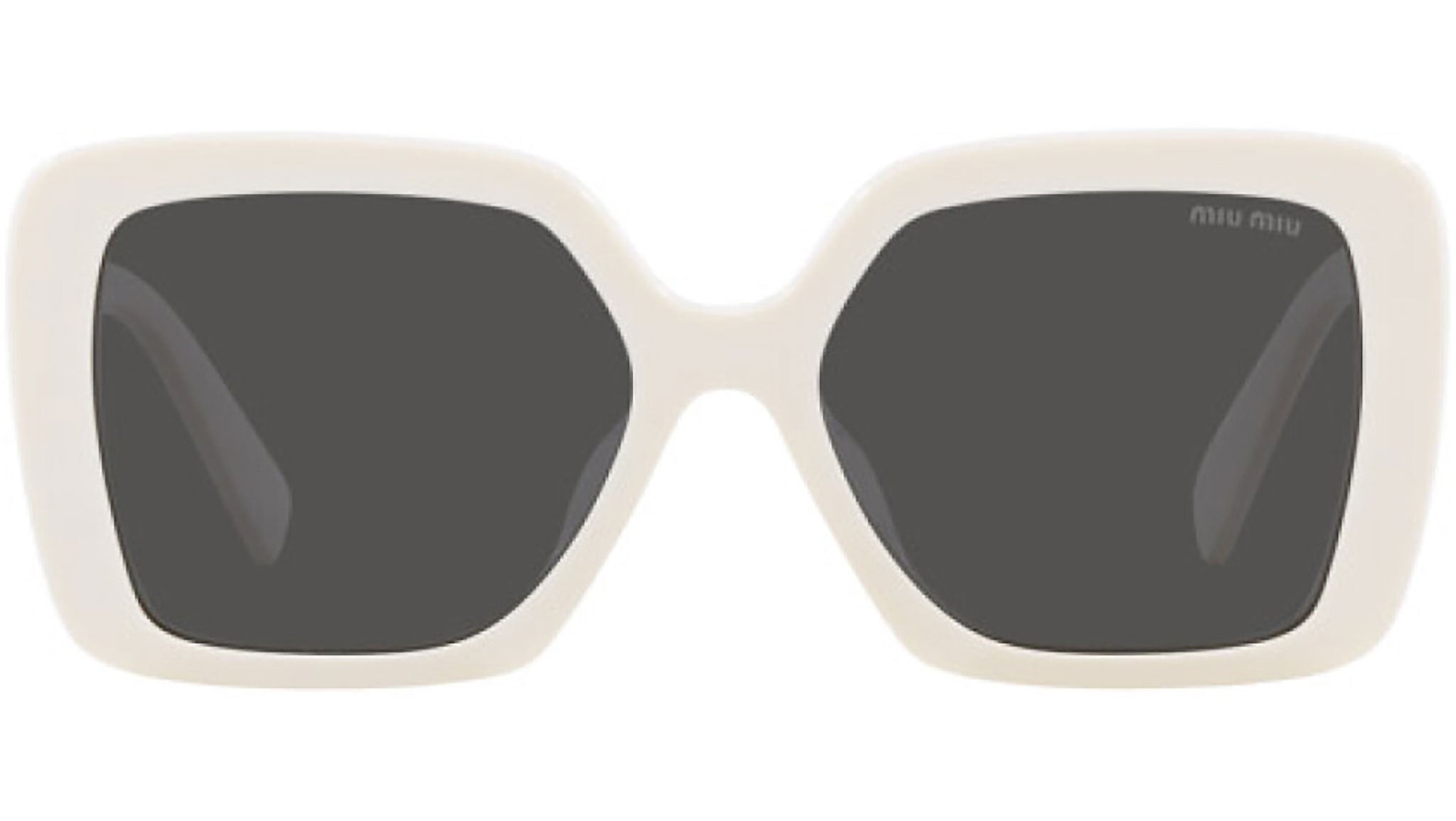 Occhiali da sole Miu Miu modello MU 10YS codice colore 1425S0 con montatura color bianco in acetato e lenti color grigio scuro. Miu Miu offre creazioni uniche, in cui la costante ricerca stilistica si combina perfettamente con la maestria artigianale della lavorazione. Le silhouette femminili e sinuose delle montature sono espressione di una ricchezza dei dettagli che rispecchia pienamente i codici stilistici e l’indiscusso talento del brand nell’unire il design non convenzionale ad un romanticismo dai rimandi retrò.