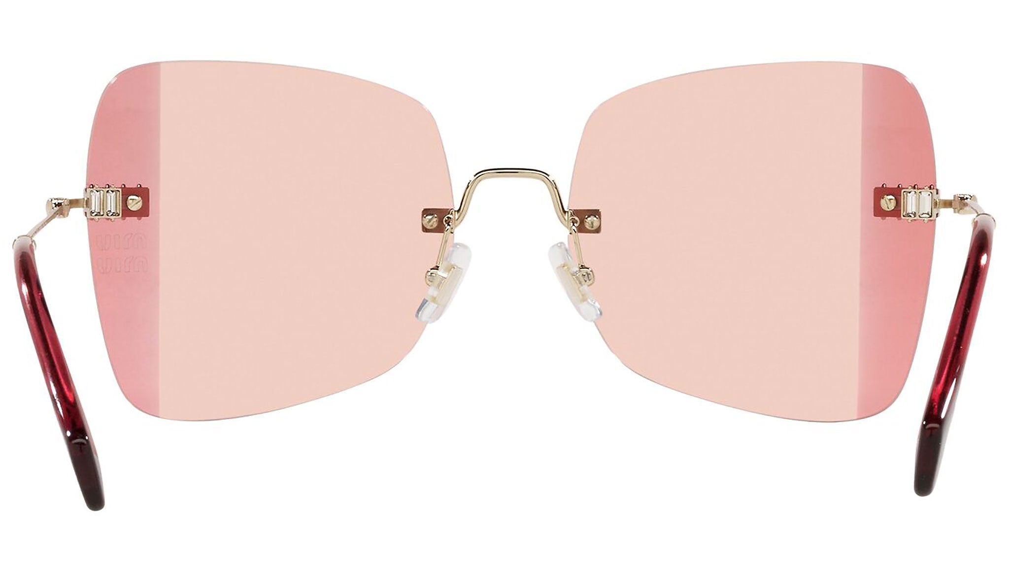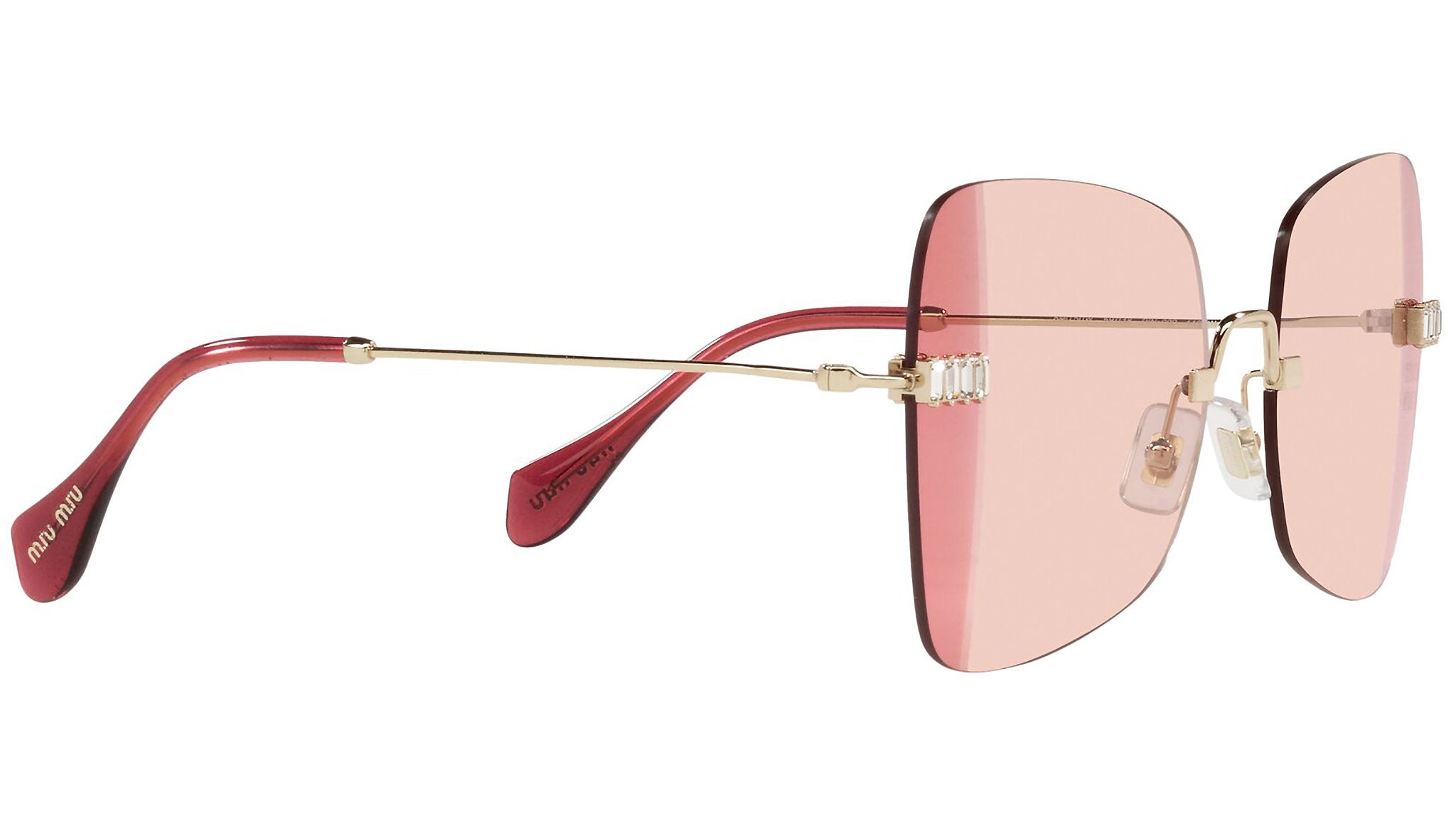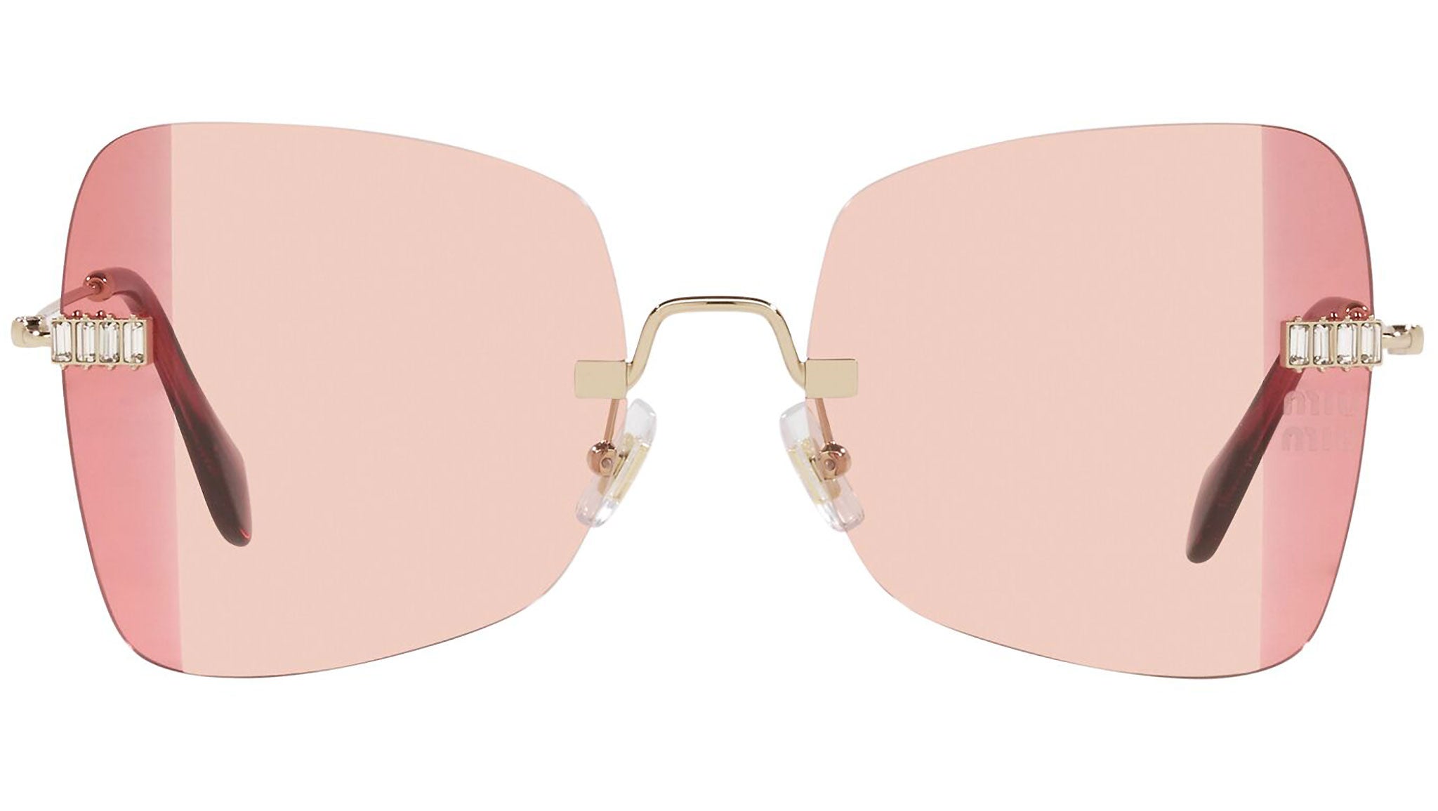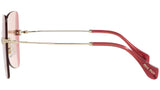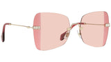 Occhiali da sole Miu Miu modello MU 50WS variante colore ZVN09P oro chiaro, con lenti color viola sfumato rosa. Miu Miu offre creazioni uniche, in cui la costante ricerca stilistica si combina perfettamente con la maestria artigianale della lavorazione. Le silhouette femminili e sinuose delle montature sono espressione di una ricchezza dei dettagli che rispecchia pienamente i codici stilistici e l’indiscusso talento del brand nell’unire il design non convenzionale ad un romanticismo dai rimandi retrò.