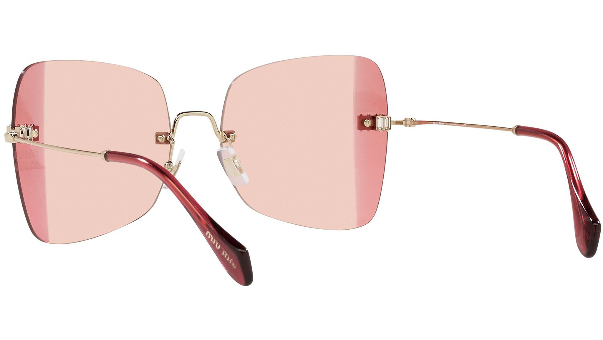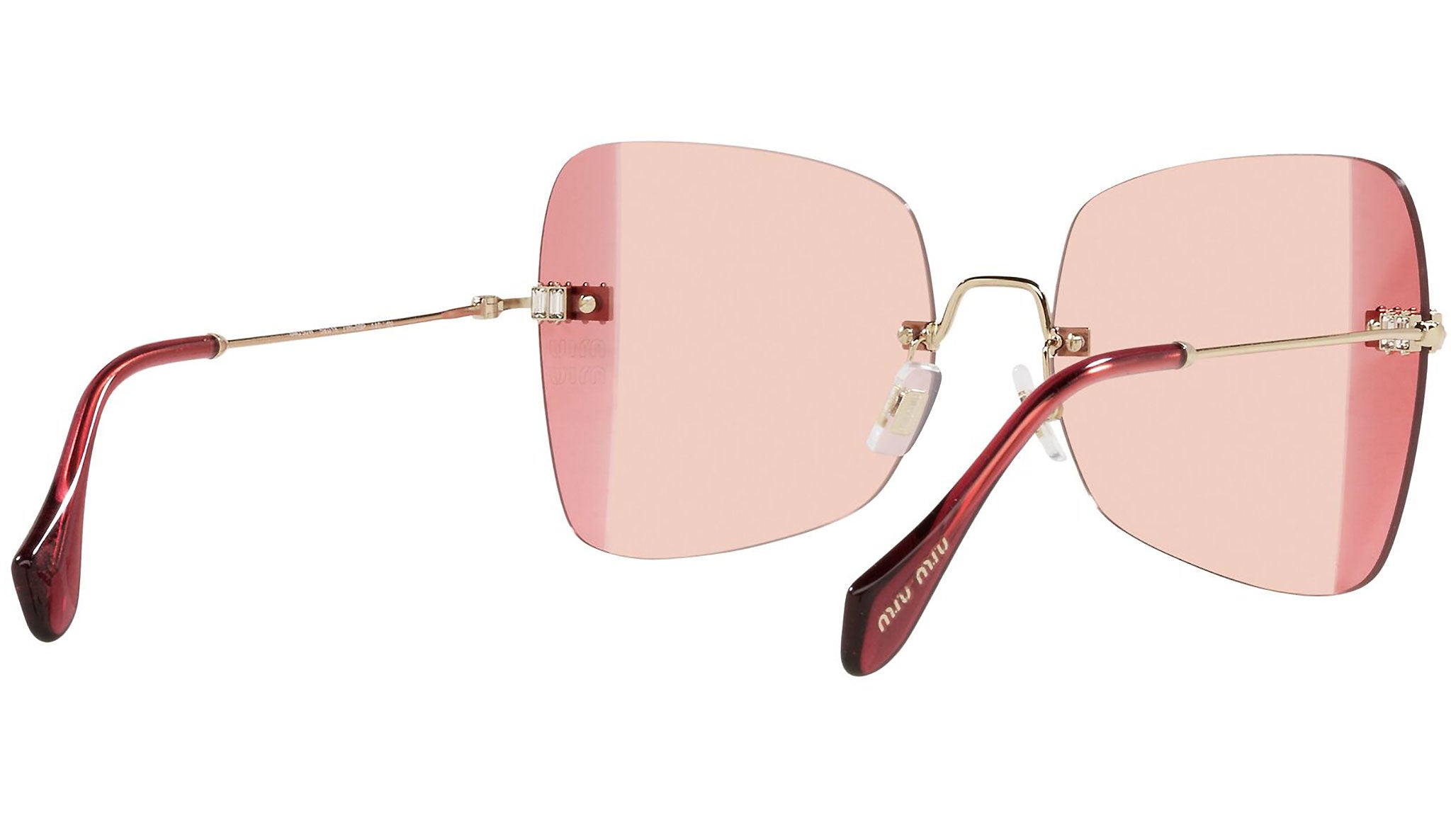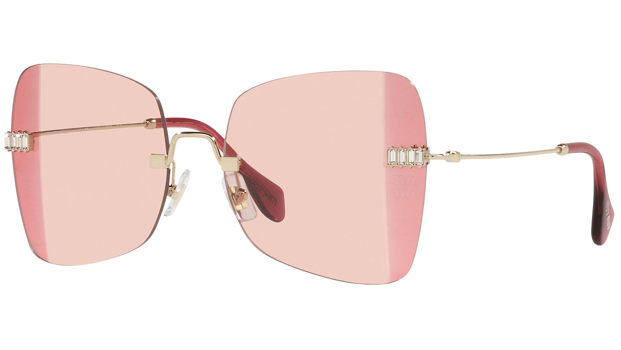Occhiali da sole Miu Miu modello MU 50WS variante colore ZVN09P oro chiaro, con lenti color viola sfumato rosa. Miu Miu offre creazioni uniche, in cui la costante ricerca stilistica si combina perfettamente con la maestria artigianale della lavorazione. Le silhouette femminili e sinuose delle montature sono espressione di una ricchezza dei dettagli che rispecchia pienamente i codici stilistici e l’indiscusso talento del brand nell’unire il design non convenzionale ad un romanticismo dai rimandi retrò.