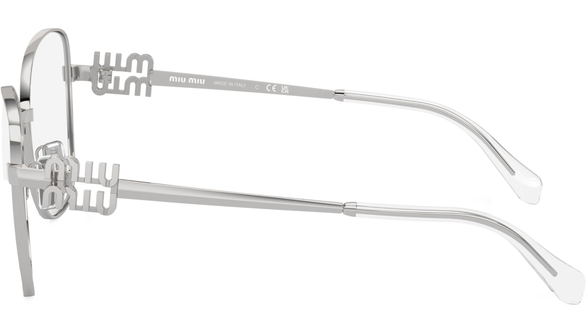 Occhiali da vista Miu Miu modello 50XV codice colore 1BC1O1 con montatura in metallo color argento e lenti demo. Miu Miu offre creazioni uniche, in cui la costante ricerca stilistica si combina perfettamente con la maestria artigianale della lavorazione. Le silhouette femminili e sinuose delle montature sono espressione di una ricchezza dei dettagli che rispecchia pienamente i codici stilistici e l’indiscusso talento del brand nell’unire il design non convenzionale ad un romanticismo dai rimandi retrò. - Rivenditore autorizzato Miu Miu online. Il prodotto viene consegnato completo di confezione e accessori originali ed è coperto dalla garanzia globale del produttore di 12 mesi.