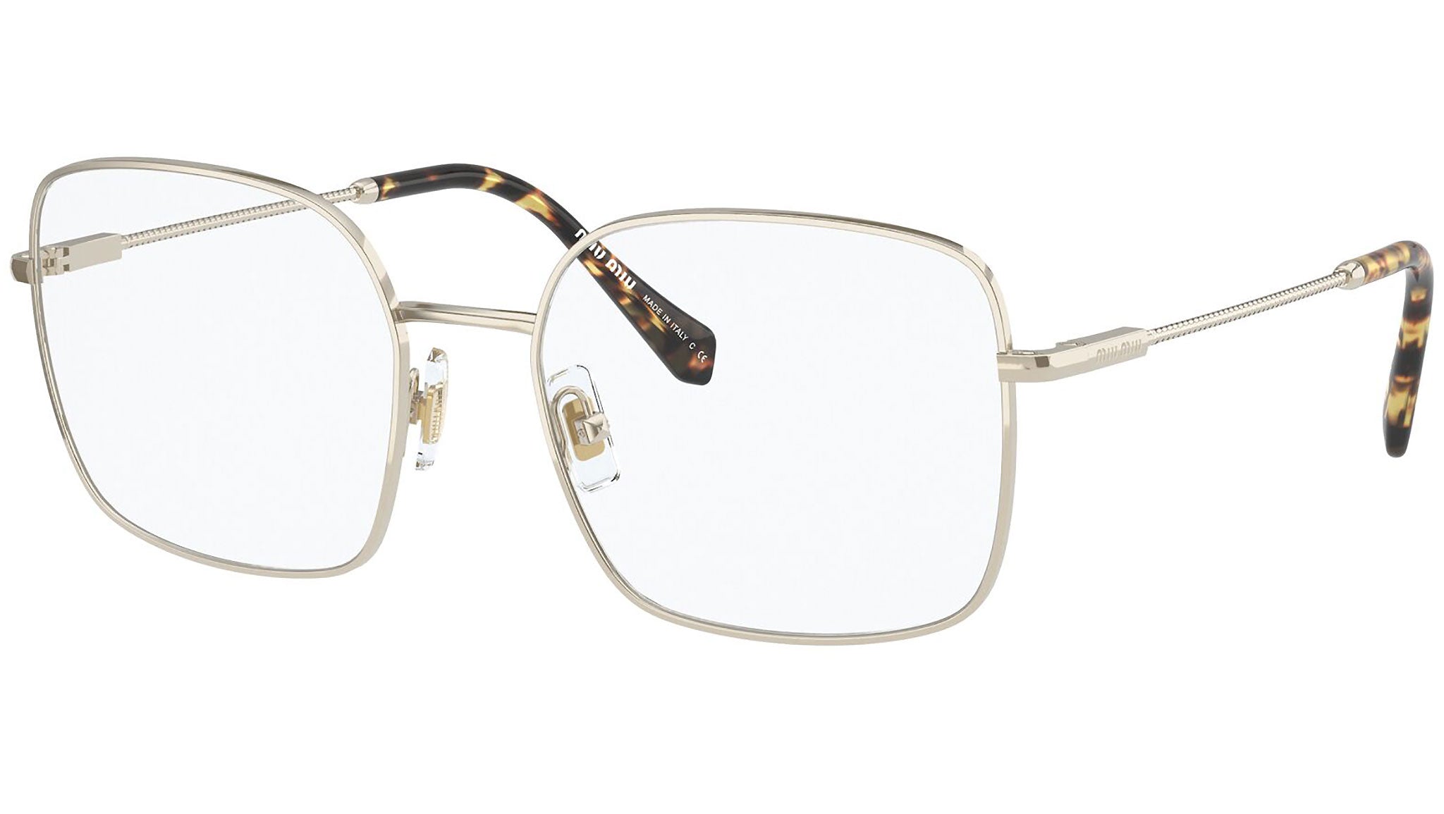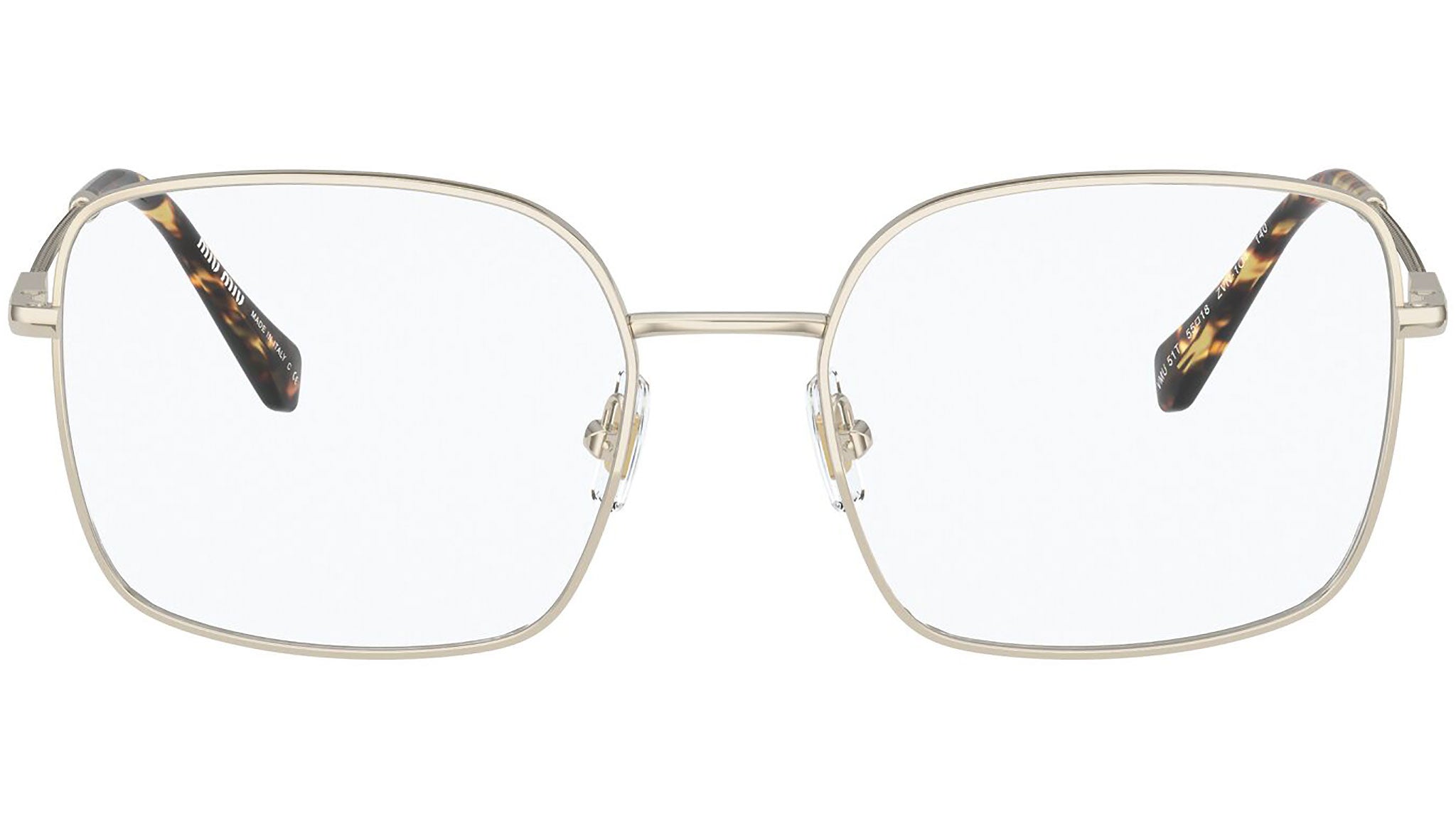 Occhiali da vista Miu Miu modello MU 51TV variante colore ZVN1O1 oro chiaro. Miu Miu offre creazioni uniche, in cui la costante ricerca stilistica si combina perfettamente con la maestria artigianale della lavorazione. Le silhouette femminili e sinuose delle montature sono espressione di una ricchezza dei dettagli che rispecchia pienamente i codici stilistici e l’indiscusso talento del brand nell’unire il design non convenzionale ad un romanticismo dai rimandi retrò.