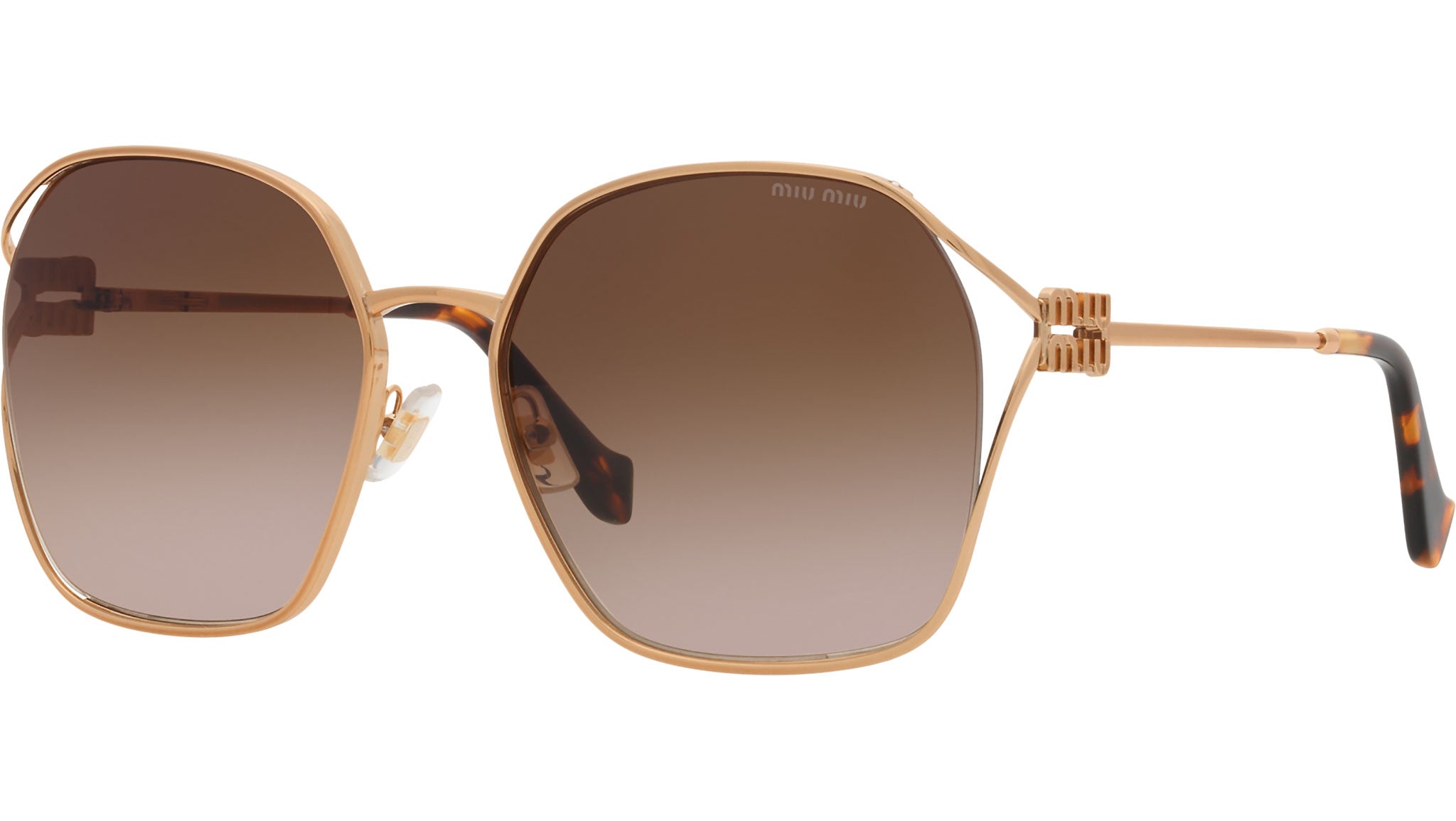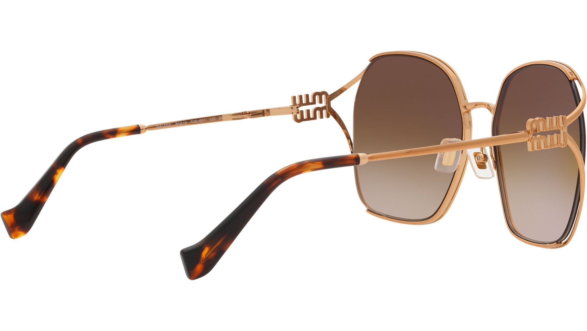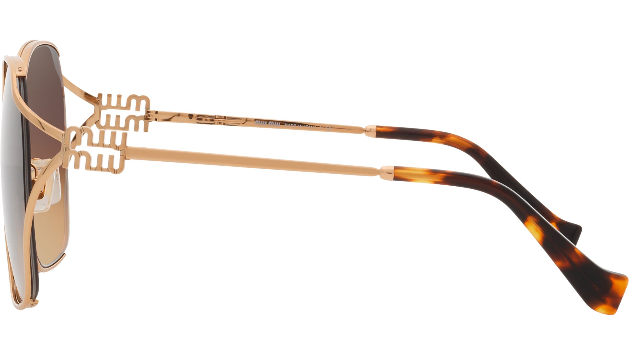 Occhiali da sole Miu Miu modello MU 70US variante colore 7OE6S1 ottone, con lenti color marrone sfumato. Miu Miu offre creazioni uniche, in cui la costante ricerca stilistica si combina perfettamente con la maestria artigianale della lavorazione. Le silhouette femminili e sinuose delle montature sono espressione di una ricchezza dei dettagli che rispecchia pienamente i codici stilistici e l’indiscusso talento del brand nell’unire il design non convenzionale ad un romanticismo dai rimandi retrò.