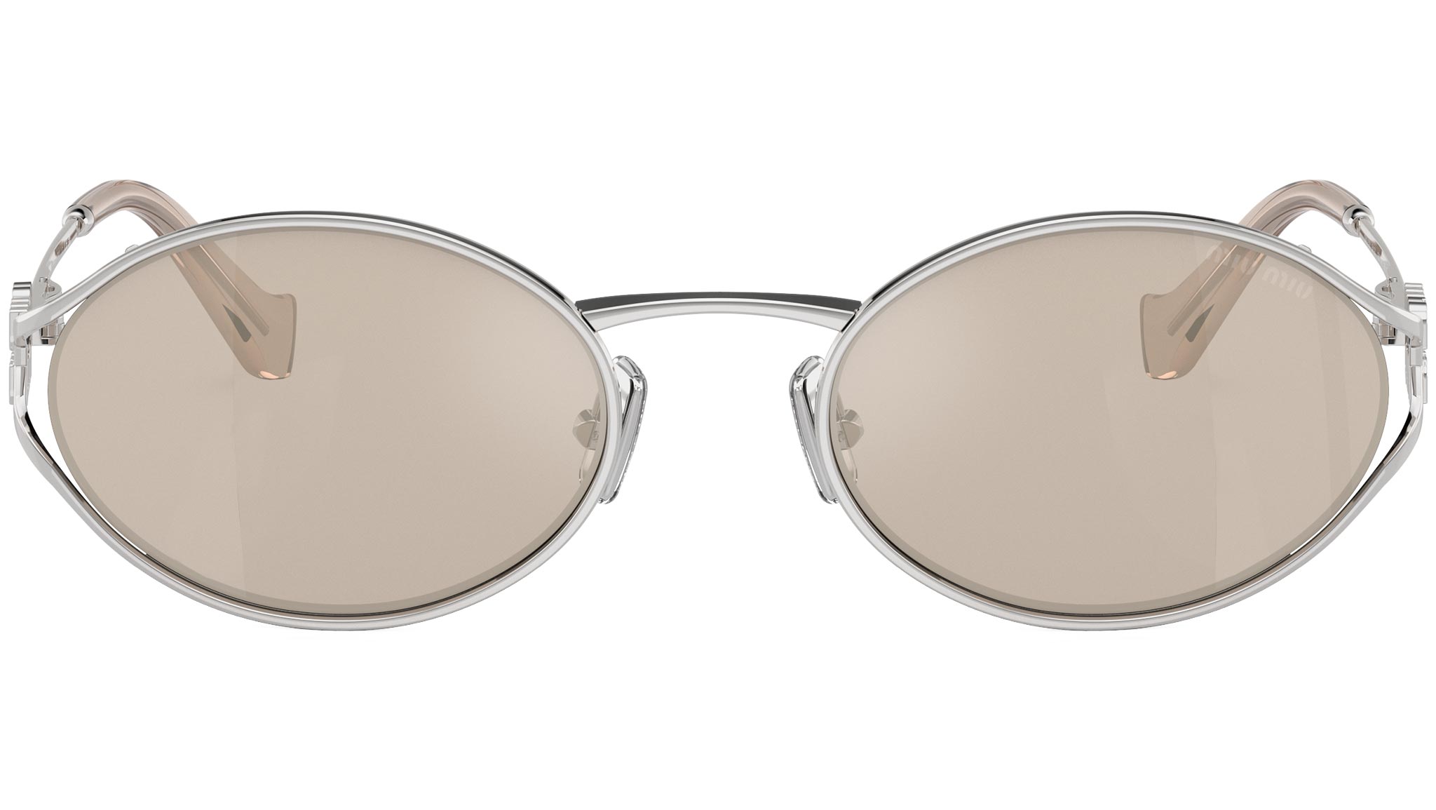 Occhiali da sole Miu Miu modello 52YS codice colore 1BC10F con montatura in metallo color argento e lenti in poliammide color oro pallido. Miu Miu offre creazioni uniche, in cui la costante ricerca stilistica si combina perfettamente con la maestria artigianale della lavorazione. Le silhouette femminili e sinuose delle montature sono espressione di una ricchezza dei dettagli che rispecchia pienamente i codici stilistici e l’indiscusso talento del brand nell’unire il design non convenzionale ad un romanticismo dai rimandi retrò. - Rivenditore autorizzato Miu Miu online. Il prodotto viene consegnato completo di confezione e accessori originali ed è coperto dalla garanzia globale del produttore di 12 mesi.