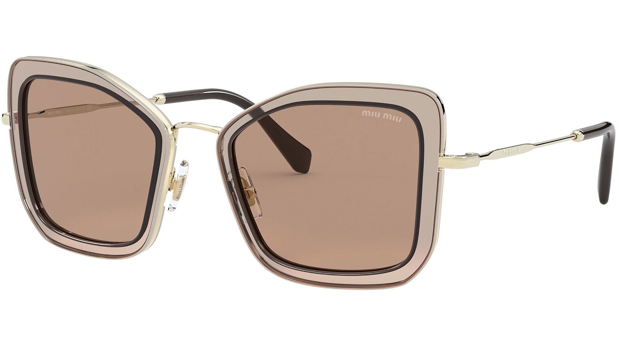 Occhiali da sole Miu Miu modello MU 55VS variante colore 06D3D2 marrone chiaro trasparente, con lenti color marrone chiaro. Miu Miu offre creazioni uniche, in cui la costante ricerca stilistica si combina perfettamente con la maestria artigianale della lavorazione. Le silhouette femminili e sinuose delle montature sono espressione di una ricchezza dei dettagli che rispecchia pienamente i codici stilistici e l’indiscusso talento del brand nell’unire il design non convenzionale ad un romanticismo dai rimandi retrò.