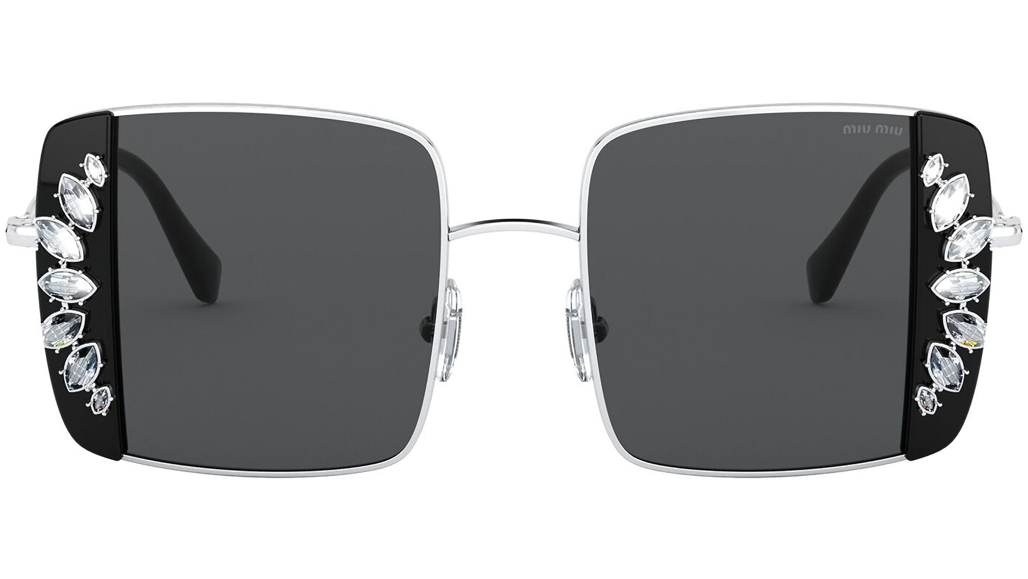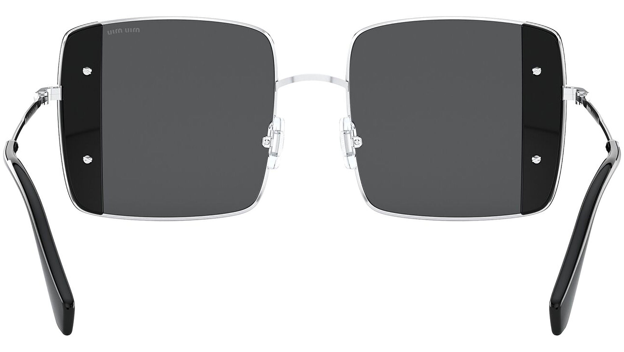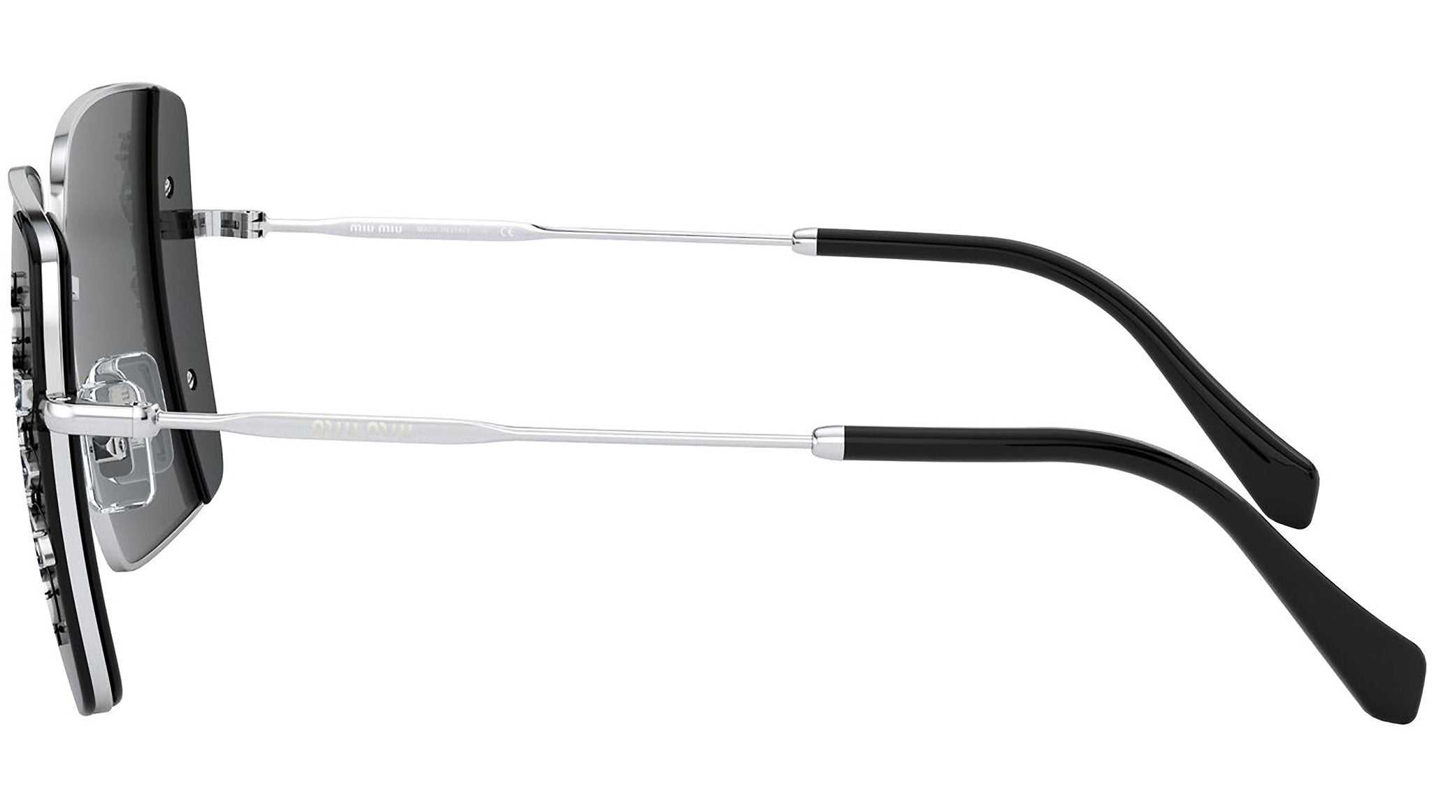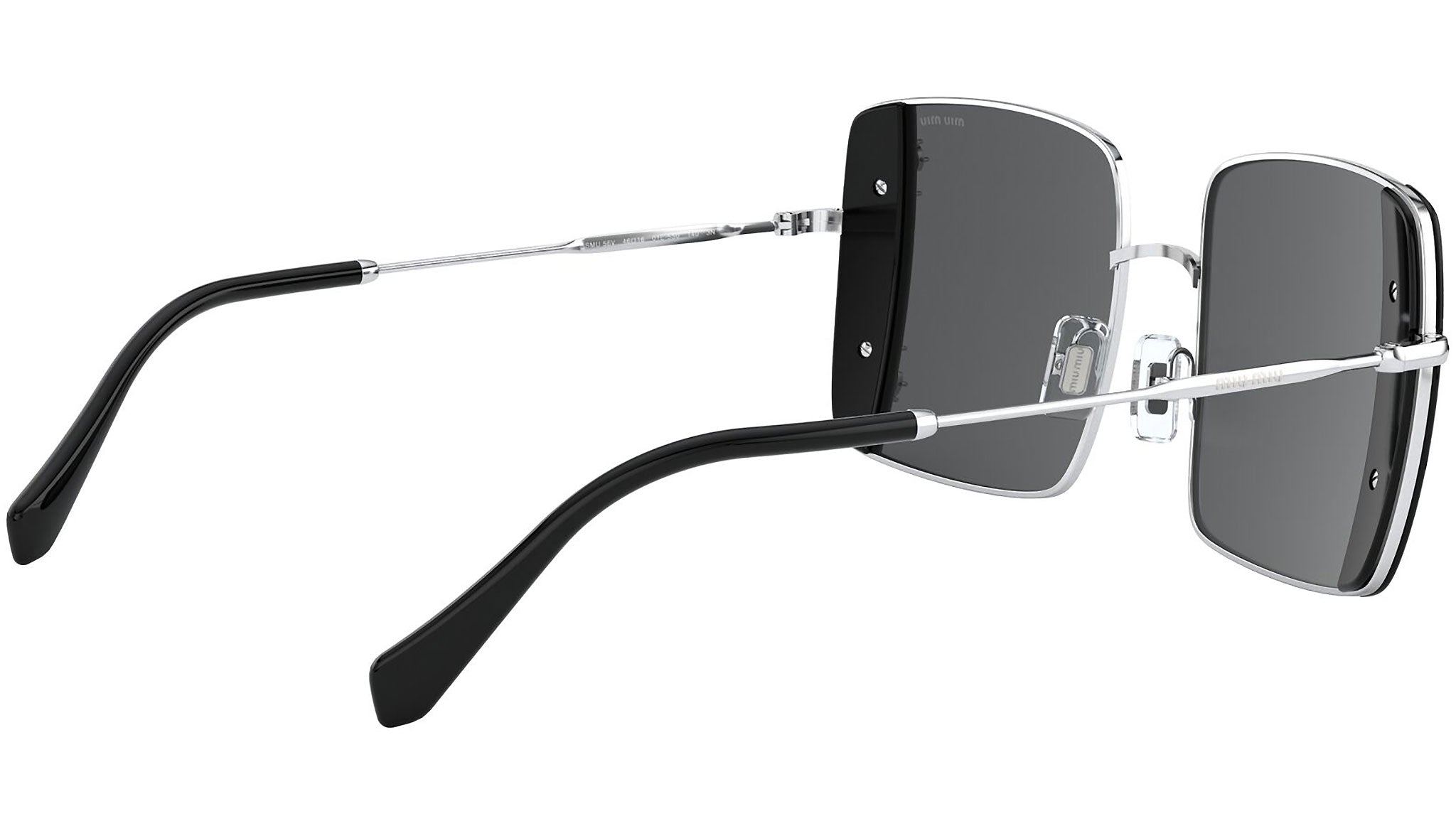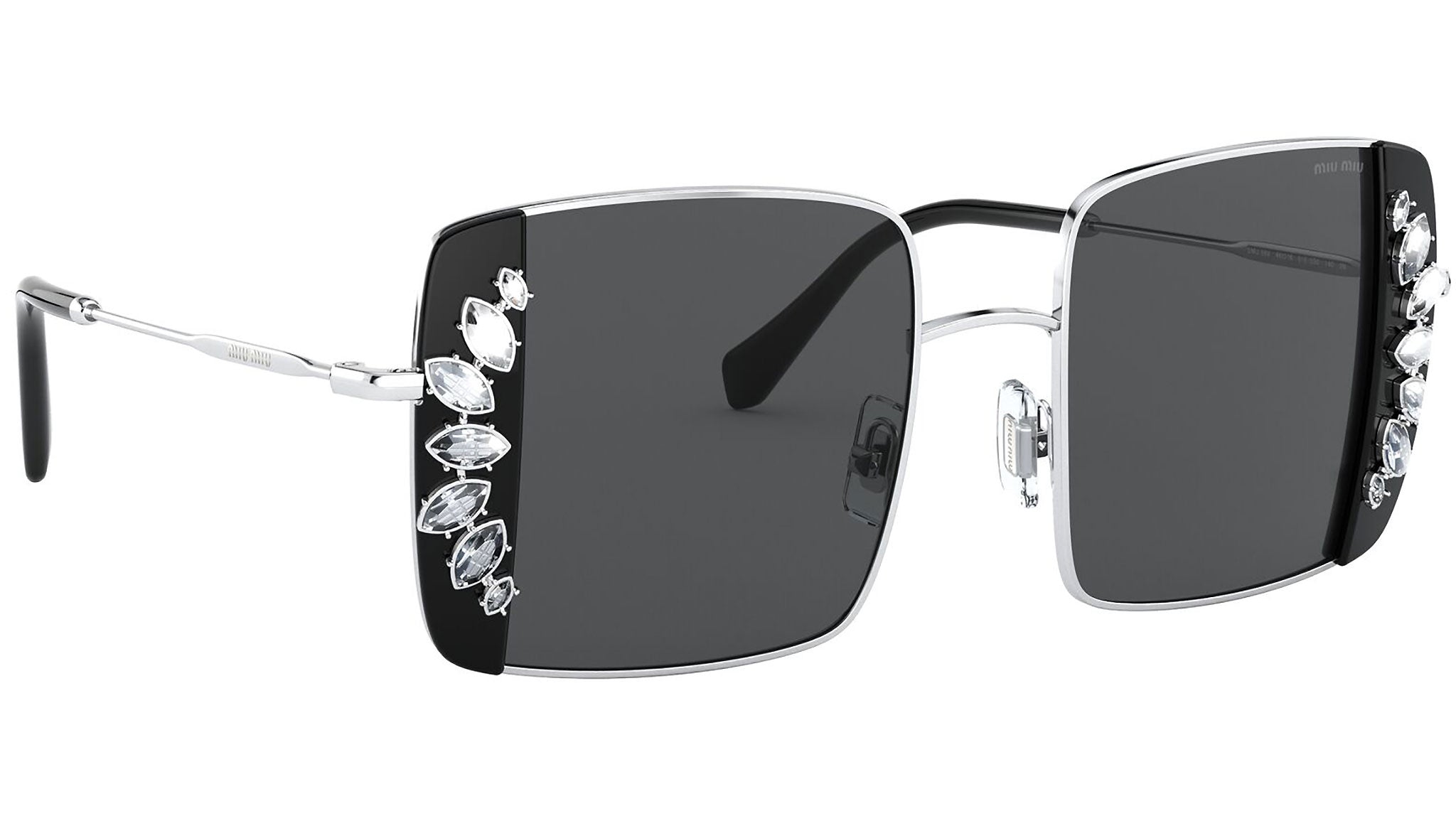 Occhiali da sole Miu Miu modello MU 56VS variante colore 01E5S0 argento e nero, con lenti color grigio scuro. Miu Miu offre creazioni uniche, in cui la costante ricerca stilistica si combina perfettamente con la maestria artigianale della lavorazione. Le silhouette femminili e sinuose delle montature sono espressione di una ricchezza dei dettagli che rispecchia pienamente i codici stilistici e l’indiscusso talento del brand nell’unire il design non convenzionale ad un romanticismo dai rimandi retrò.