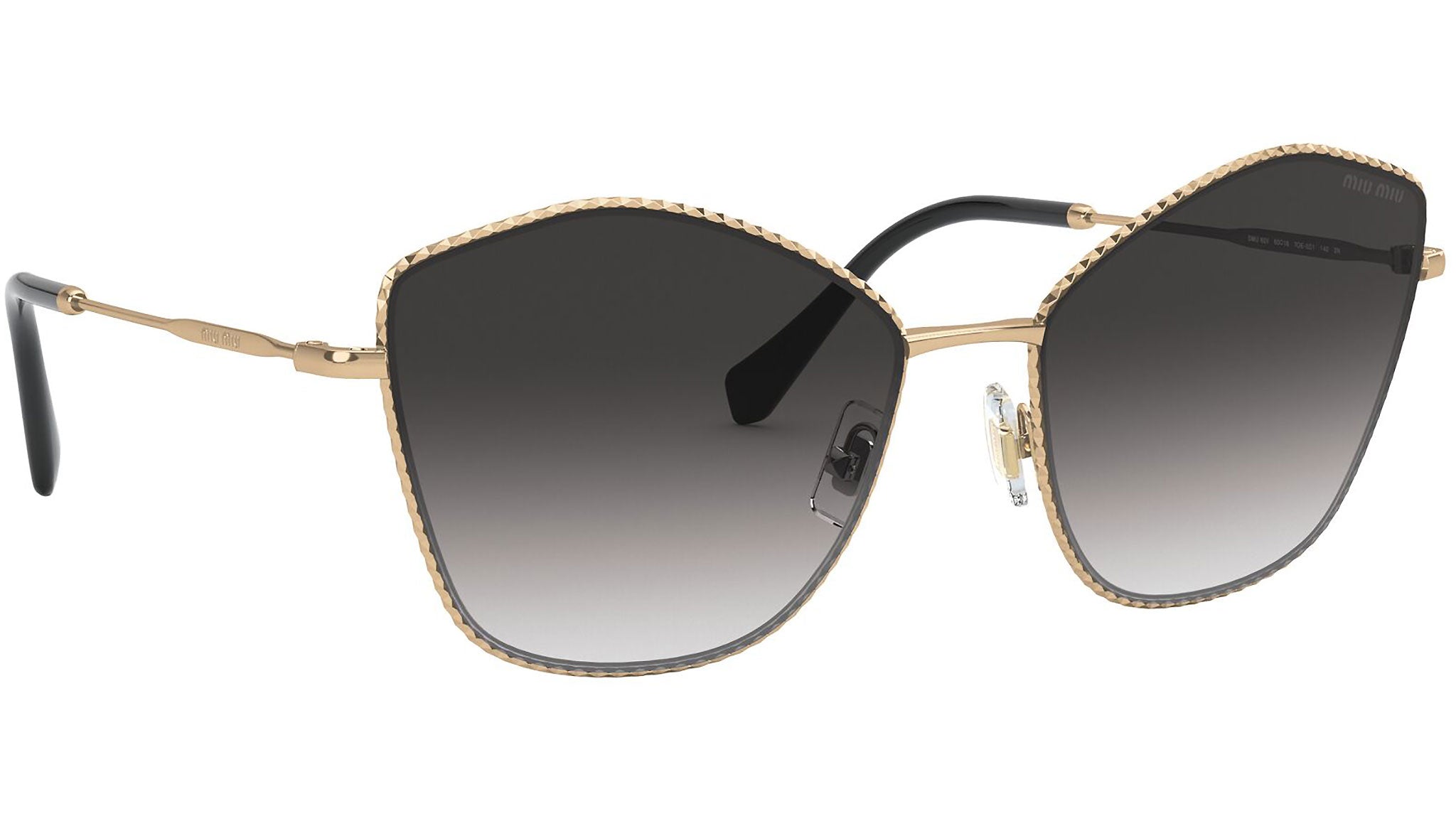 Occhiali da sole Miu Miu modello MU 60VS variante colore 7OE5D1 oro anticato, con lenti color grigio sfumato. Miu Miu offre creazioni uniche, in cui la costante ricerca stilistica si combina perfettamente con la maestria artigianale della lavorazione. Le silhouette femminili e sinuose delle montature sono espressione di una ricchezza dei dettagli che rispecchia pienamente i codici stilistici e l’indiscusso talento del brand nell’unire il design non convenzionale ad un romanticismo dai rimandi retrò.