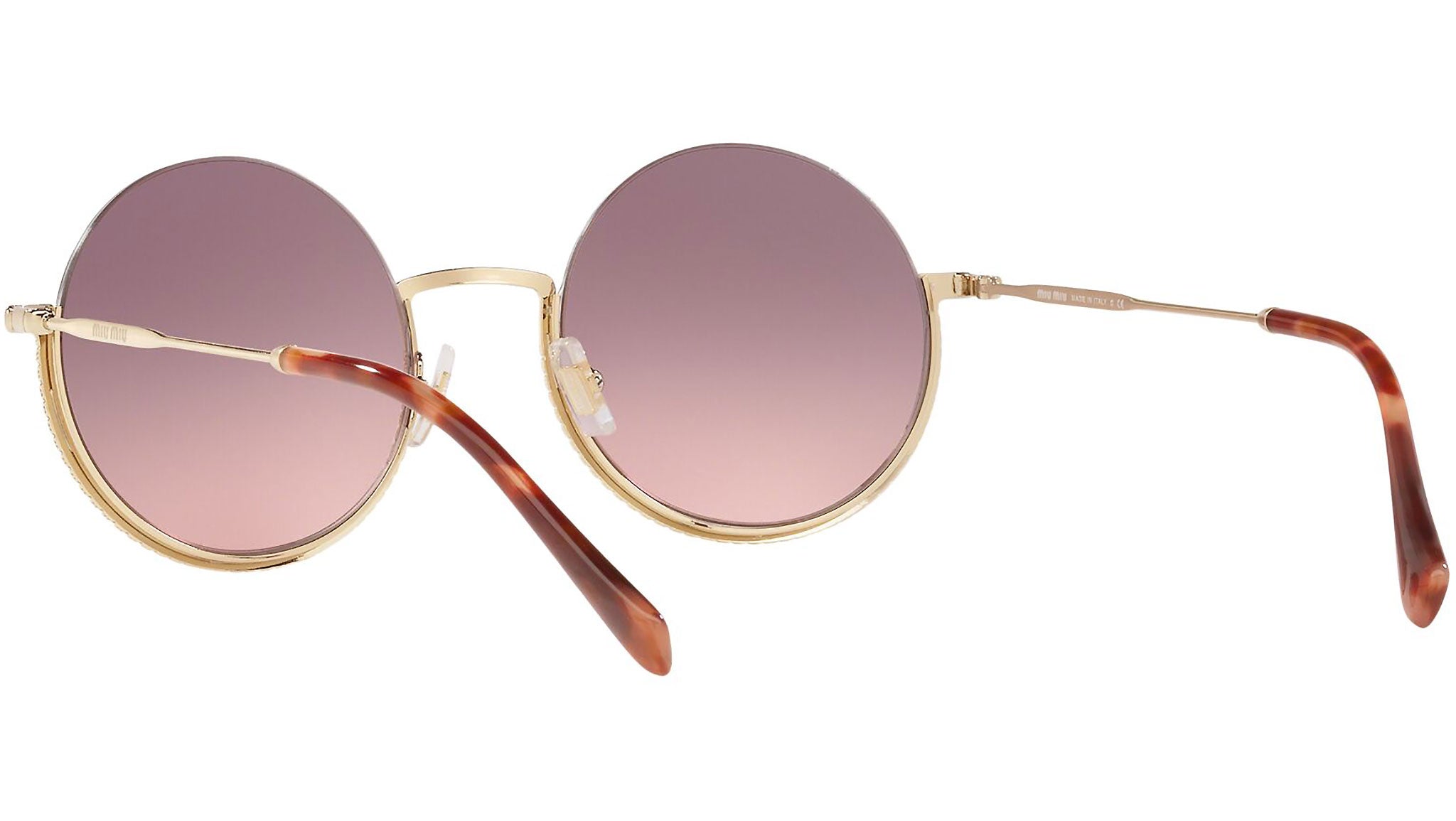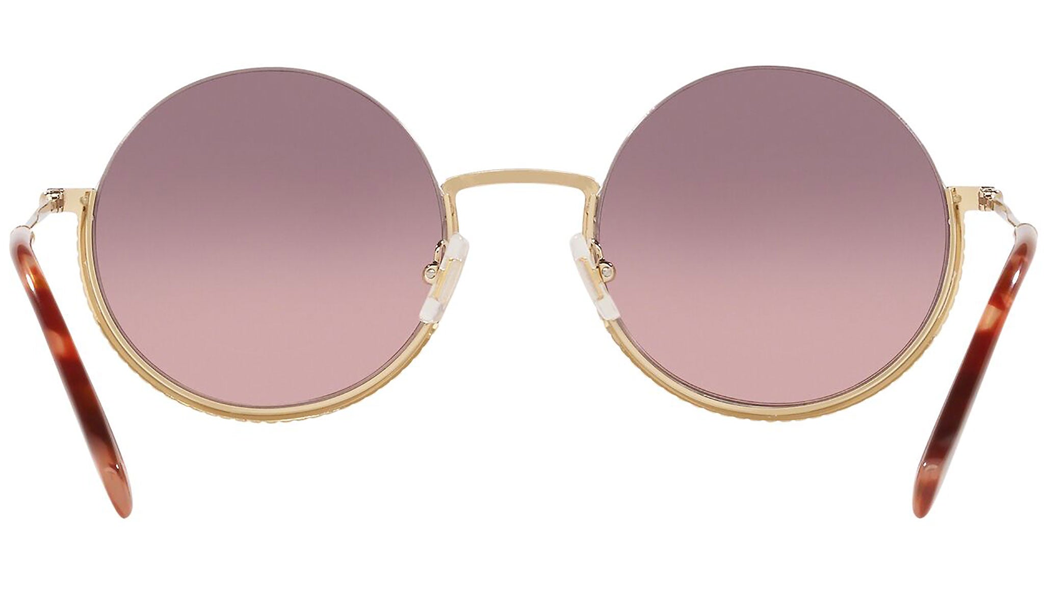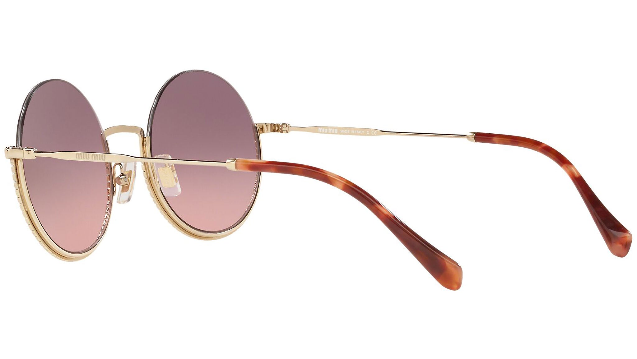 Occhiali da sole Miu Miu modello MU 69US variante colore ZVN146 oro chiaro, con lenti color rosa sfumato grigio. Miu Miu offre creazioni uniche, in cui la costante ricerca stilistica si combina perfettamente con la maestria artigianale della lavorazione. Le silhouette femminili e sinuose delle montature sono espressione di una ricchezza dei dettagli che rispecchia pienamente i codici stilistici e l’indiscusso talento del brand nell’unire il design non convenzionale ad un romanticismo dai rimandi retrò.