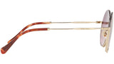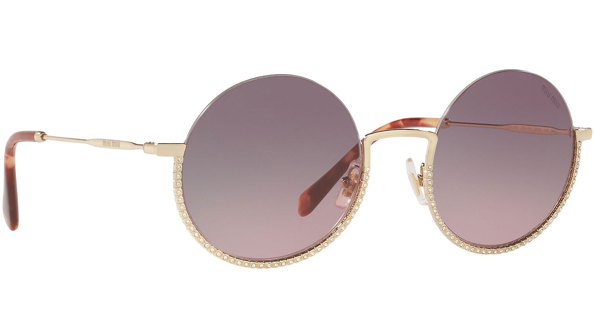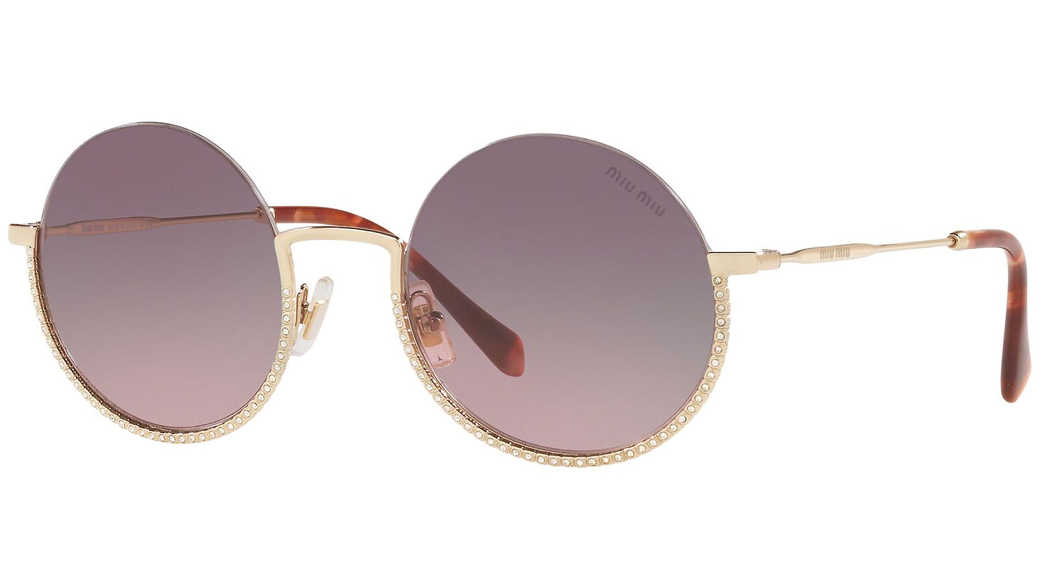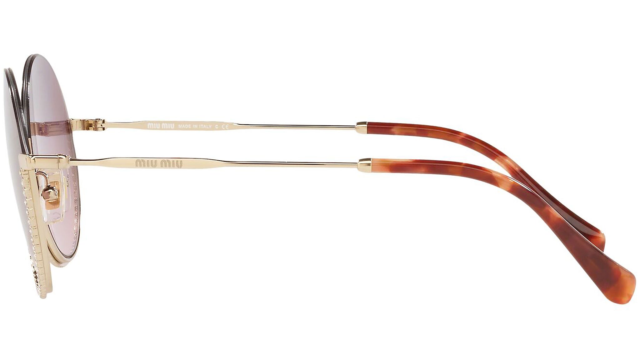 Occhiali da sole Miu Miu modello MU 69US variante colore ZVN146 oro chiaro, con lenti color rosa sfumato grigio. Miu Miu offre creazioni uniche, in cui la costante ricerca stilistica si combina perfettamente con la maestria artigianale della lavorazione. Le silhouette femminili e sinuose delle montature sono espressione di una ricchezza dei dettagli che rispecchia pienamente i codici stilistici e l’indiscusso talento del brand nell’unire il design non convenzionale ad un romanticismo dai rimandi retrò.