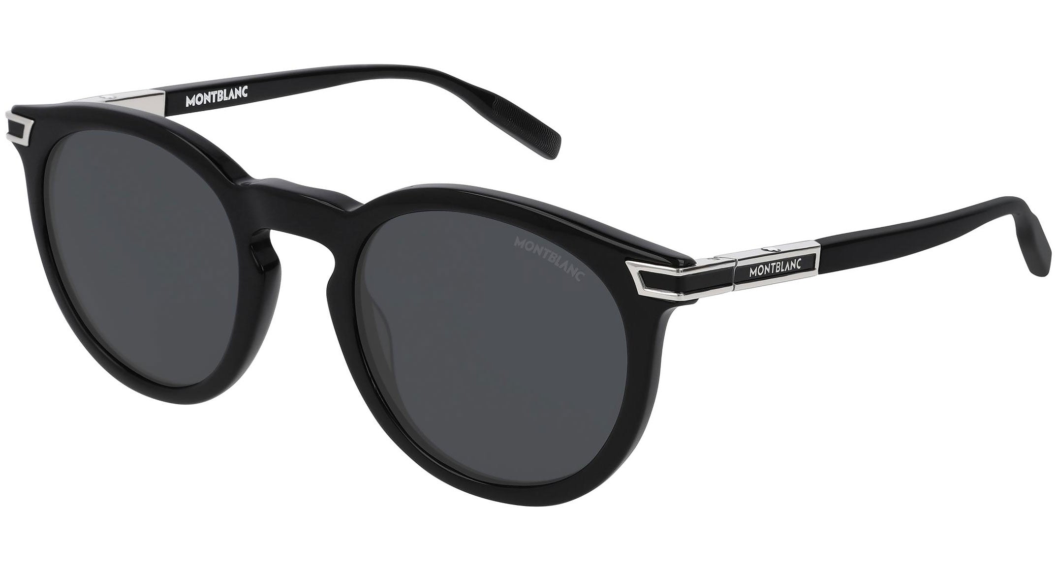 Montblanc sunglasses collection model MB0041S 001 featuring shiny black frame and grey lens. Montblanc revolutionized the culture of writing with breakthrough innovations. Today, the Maison continues to push boundaries and evolve the expression of fine craftsmanship across each of its product categories: the pinnacle of luxury writing instruments, timepieces, leather goods, accessories, fragrances and eyewear.