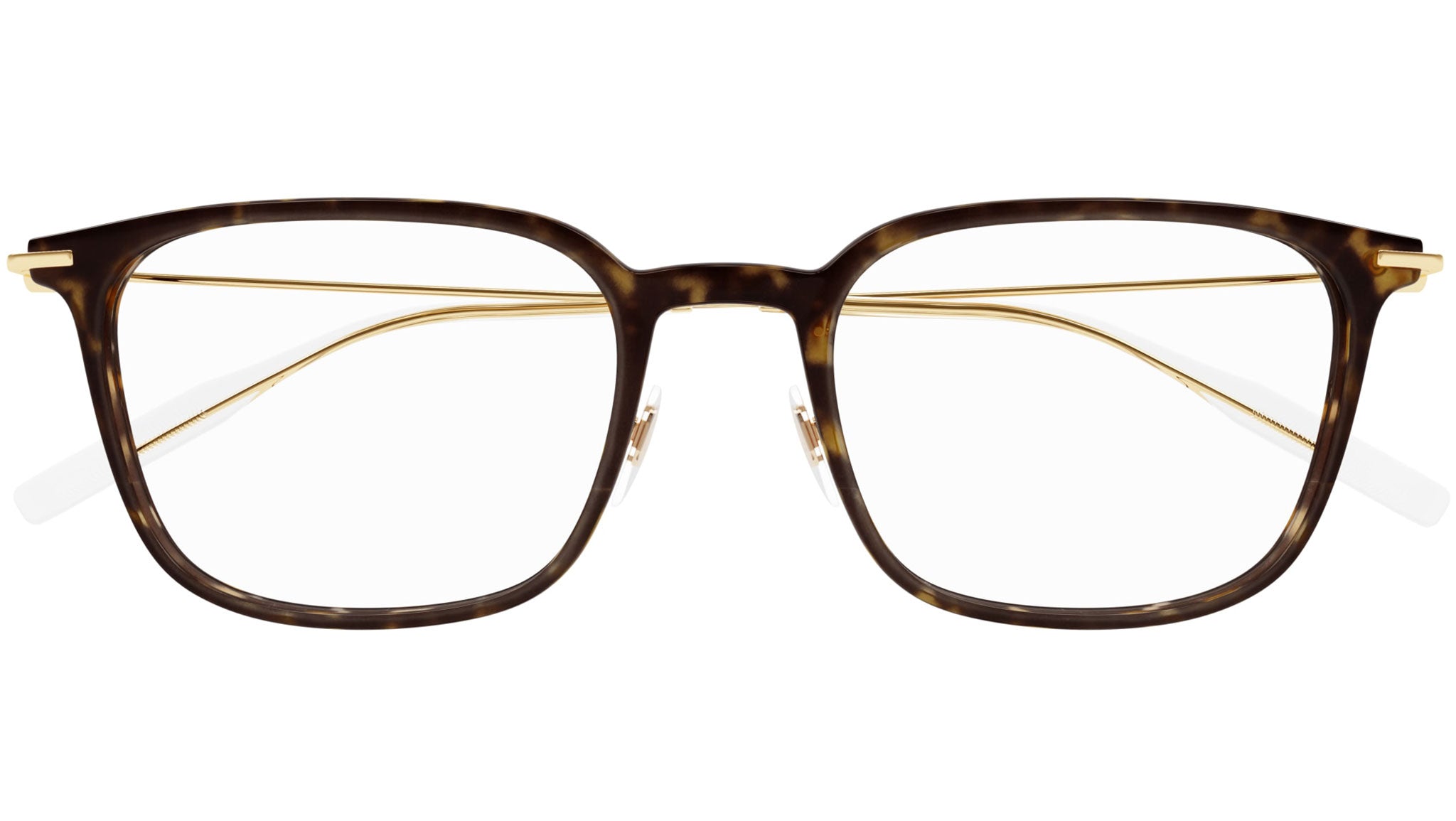 Occhiali da vista Monblanc linea Established modello MB0100O variante colore 007 tartaruga scuro lucido con astine color lenti demo.