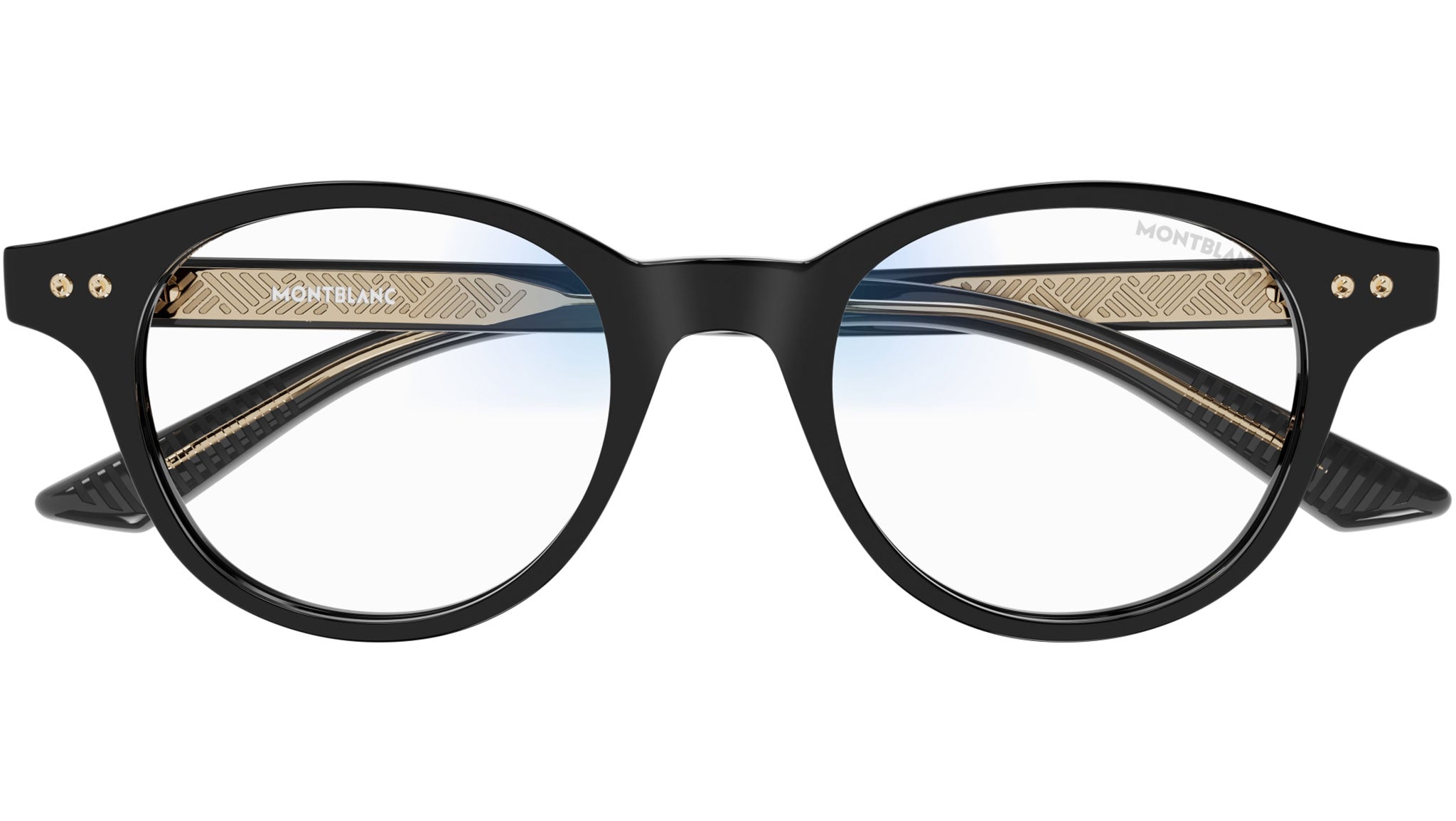 Occhiali da sole Montblanc linea Millennials modello MB0255S variante colore 001 nero lucido tinta unita con lenti color blu fotocromatico con riduzione luce blu.