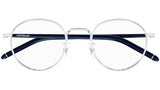 Occhiali da vista Monblanc linea Established modello MB0273O variante colore 003 argento lucido con astine color lenti demo.