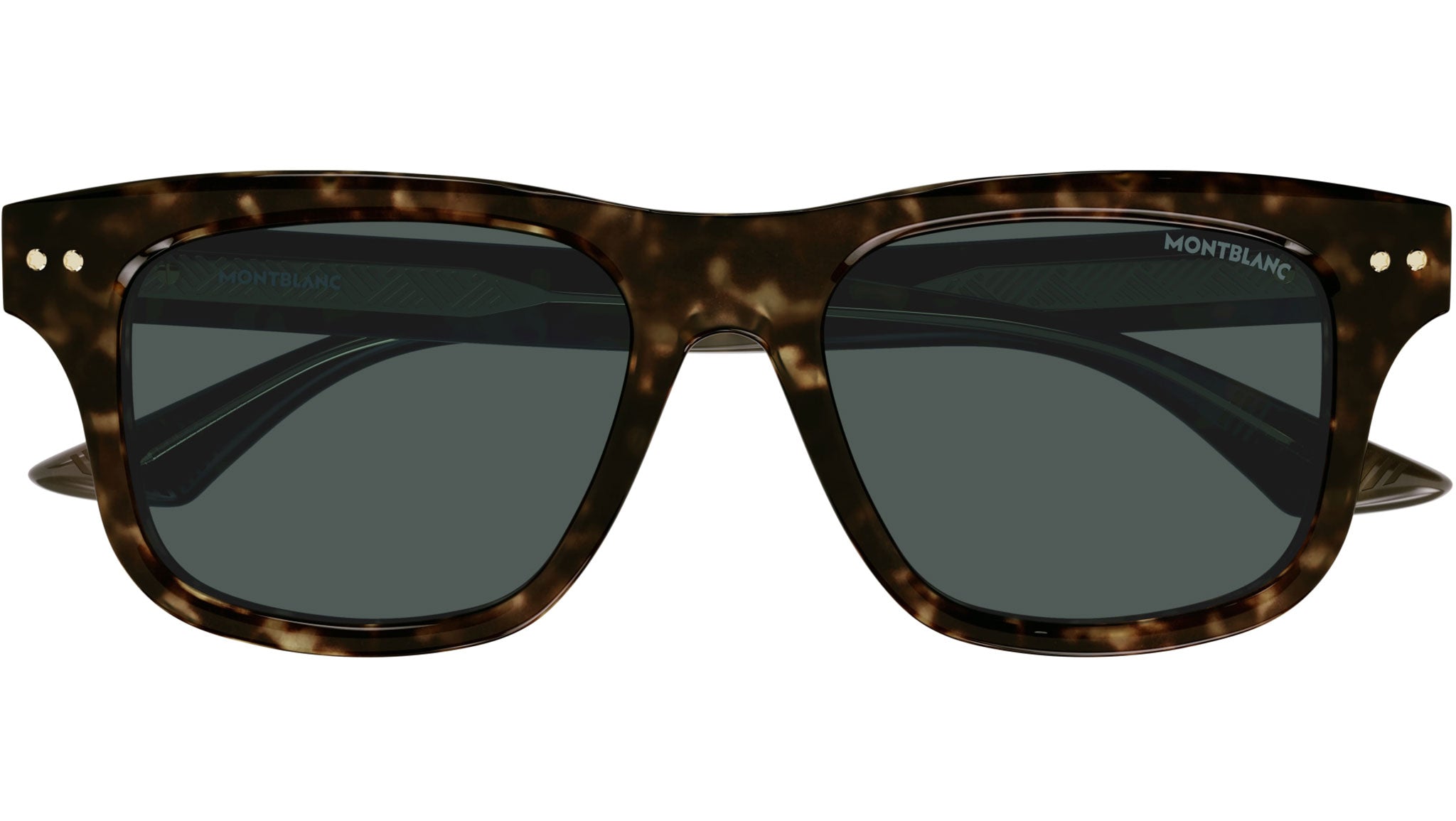 Occhiali da sole Montblanc modello MB0319S linea Snowcap forma rettangolare in acetato riciclato, codice colore 002 tartaruga scuro lucido con aste color tartaruga e lenti color verde tinta unita.