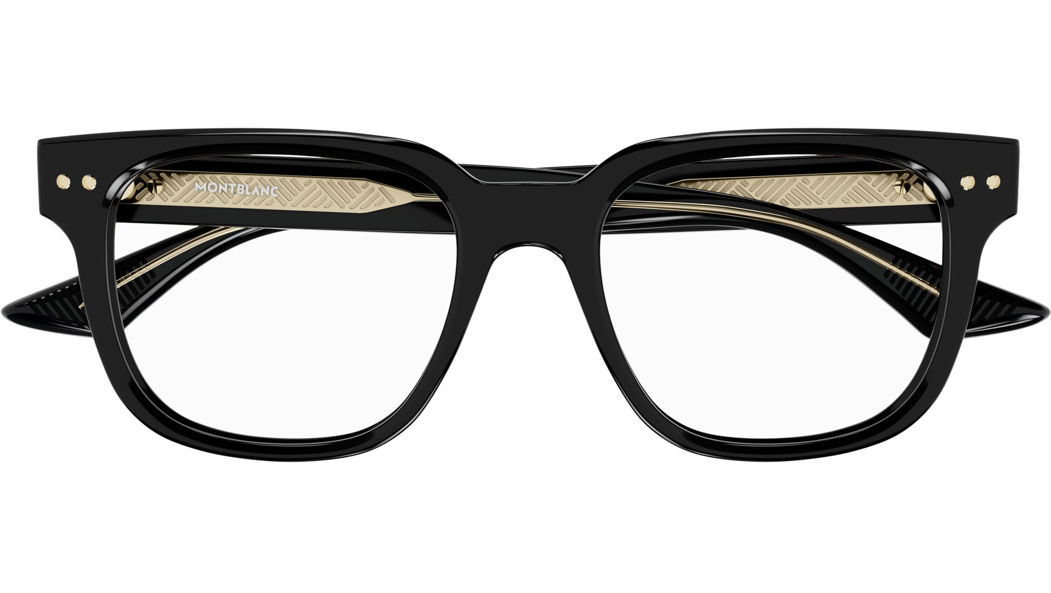 Occhiali da vista Montblanc modello MB0321O linea Snowcap forma rettangolare in acetato riciclato, codice colore 001 nero lucido tinta unita con aste color nero e lenti demo.