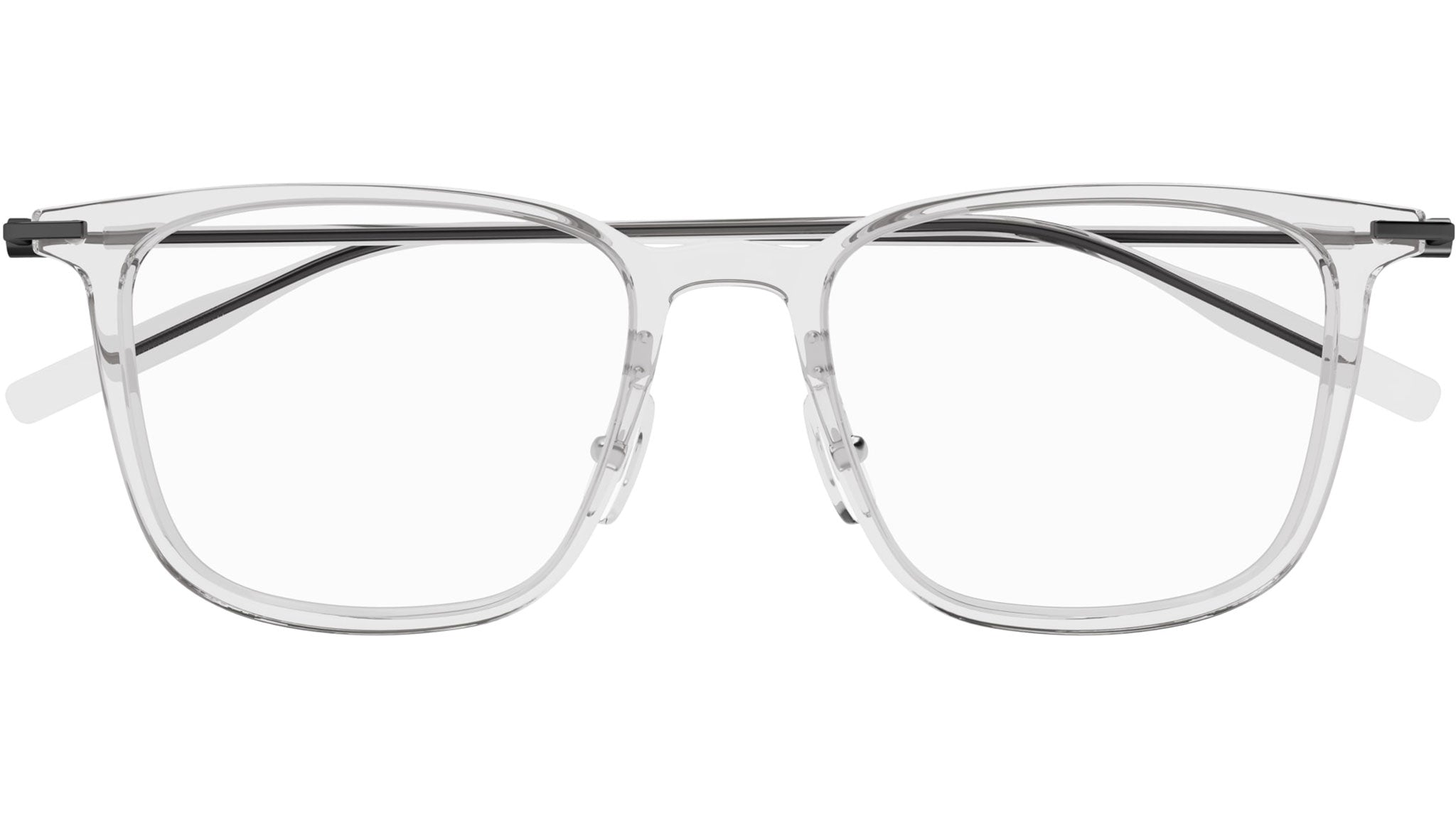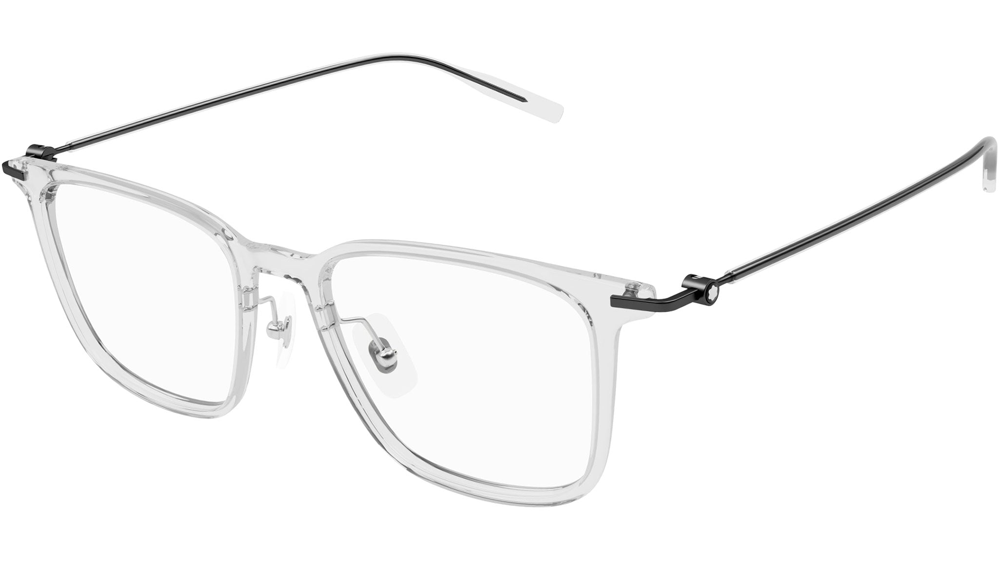 Occhiali da vista Montblanc Snowcap modello MB0354O in iniettato rettangolare codice colore 003 cristallo lucido con aste in nero e lenti demo. Rivenditore autorizzato Montblanc online. Gli occhiali vengono consegnati con custodia e accessori originali e sono coperti dalla garanzia ufficiale di 12 mesi del produttore.