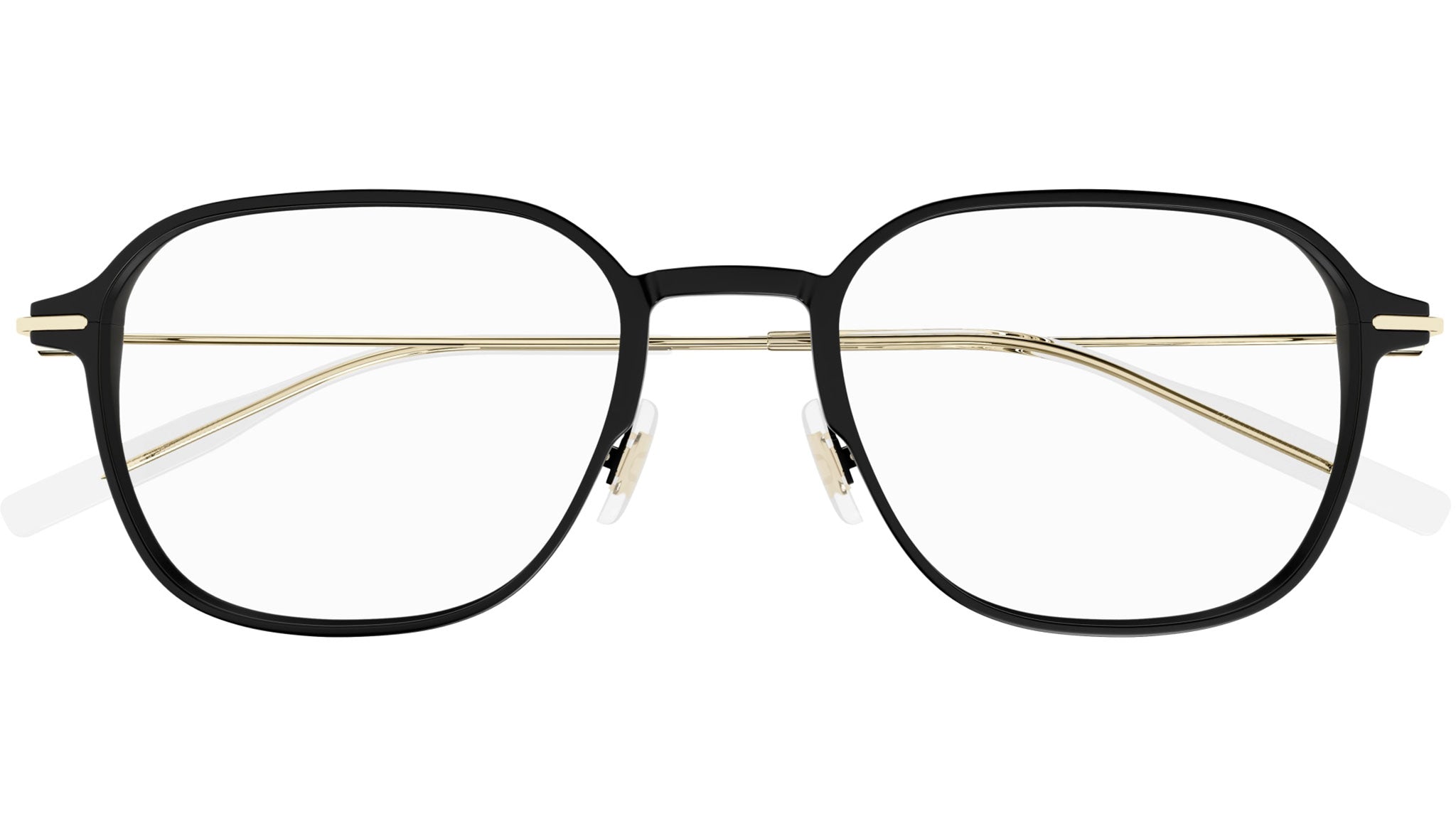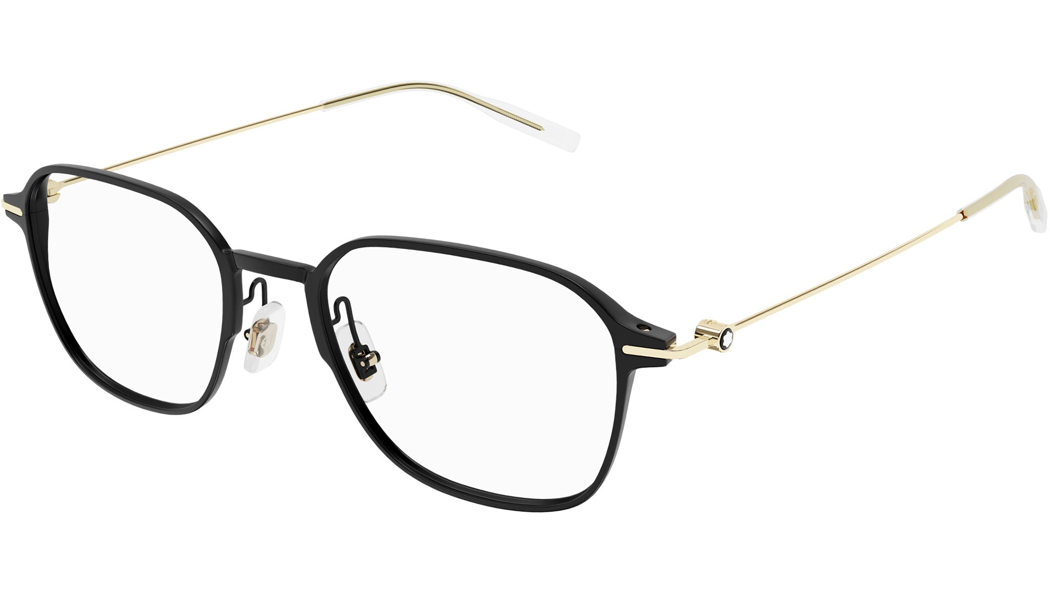 Occhiali da vista Montblanc Snowcap modello MB0358O in alluminio rettangolare nero semiopaco con aste in oro e lenti demo. Rivenditore autorizzato Montblanc online. Gli occhiali vengono consegnati con custodia e accessori originali e sono coperti dalla garanzia ufficiale di 12 mesi del produttore.