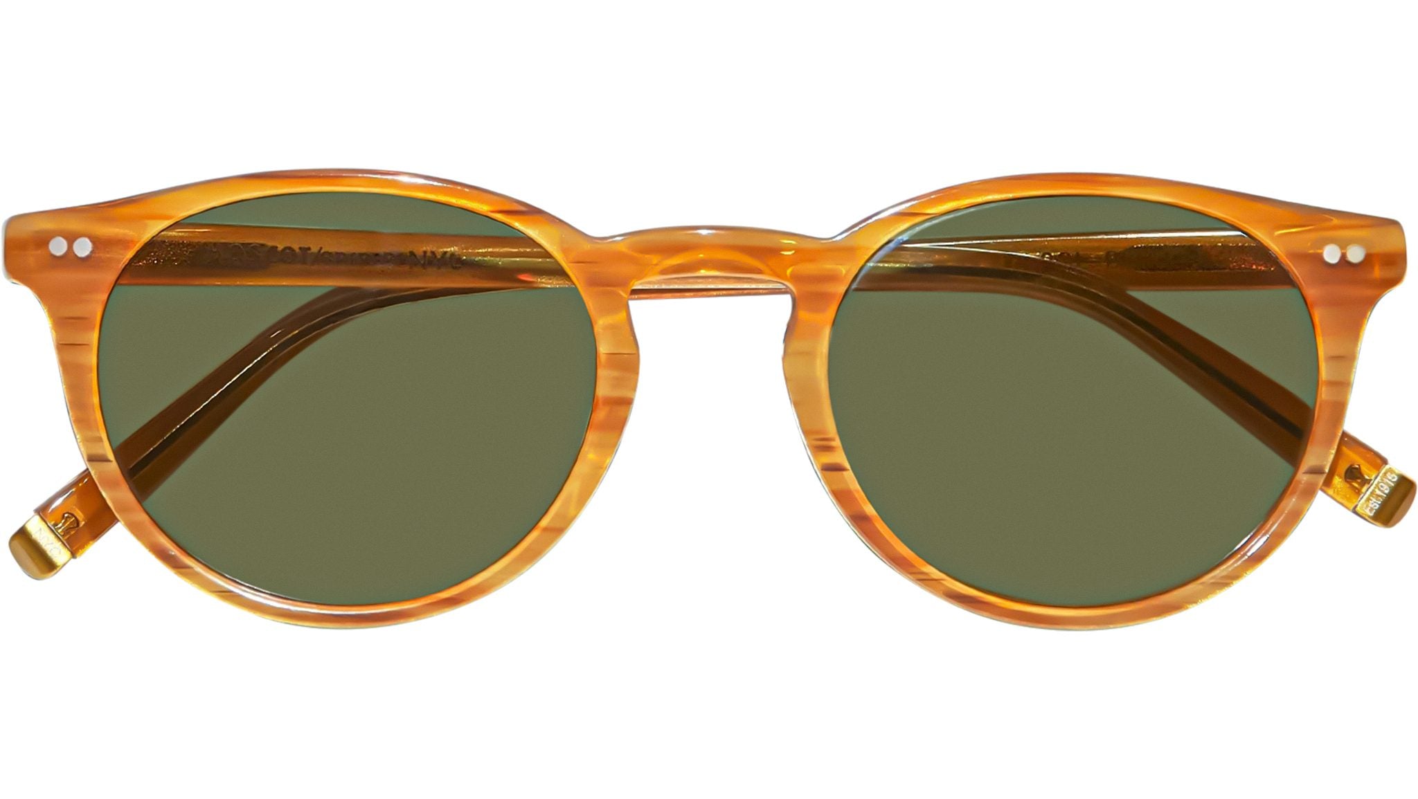 Occhiali da sole Moscot Frankie Sun unisex con montatura rotonda in acetato biondo e lenti verde. Linea: Spirits. Codice modello: Frankie Sun. Codice colore: 0208. Rivenditore autorizzato Moscot online. Gli occhiali vengono consegnati con custodia e accessori originali e sono coperti dalla garanzia ufficiale di 12 mesi del produttore.