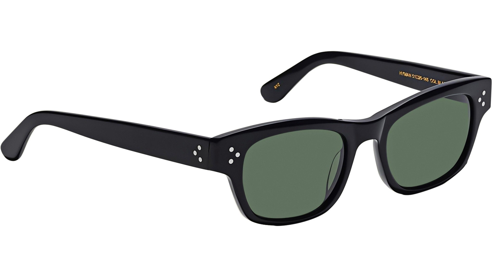 Occhiali da sole Moscot Hyman Sun unisex con montatura squadrata in acetato nero e lenti verde G-15. Linea: Originals. Codice modello: Hyman Sun. Codice colore: 0200. Rivenditore autorizzato Moscot online. Gli occhiali vengono consegnati con custodia e accessori originali e sono coperti dalla garanzia ufficiale di 12 mesi del produttore.