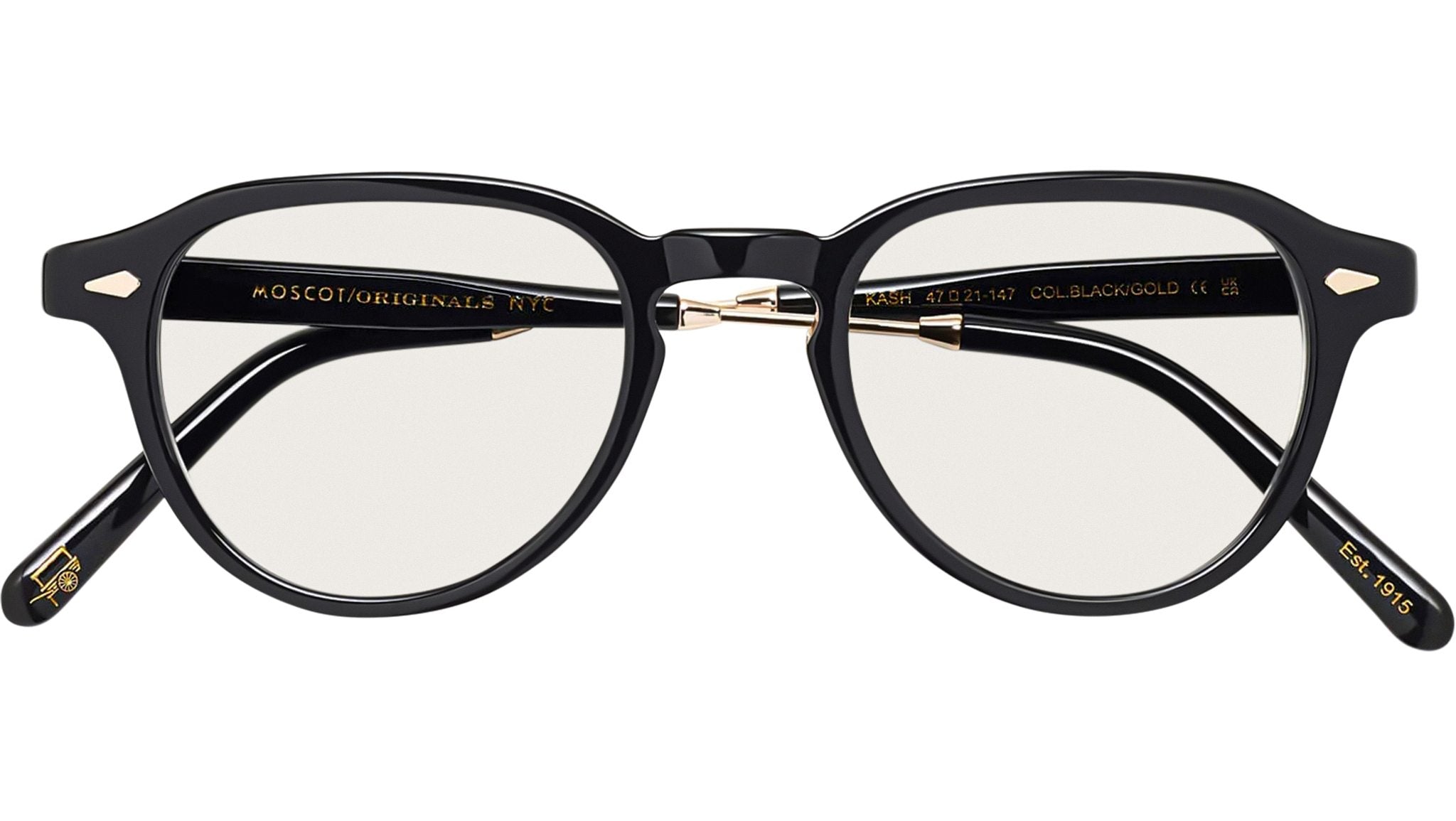 Occhiali da vista Moscot Kash unisex con montatura rotonda in acetato-metallo nero / oro e lenti demo. Linea: Originals. Codice modello: Kash. Codice colore: 0235. Rivenditore autorizzato Moscot online. Gli occhiali vengono consegnati con custodia e accessori originali e sono coperti dalla garanzia ufficiale di 12 mesi del produttore.