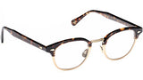 Grand, rich, and powerful, while staying humble, this combination metal acetate frame continues to uphold the LEMTOSH Legacy with its own gold standard. Handcrafted using a combination of metal and Italian acetate featuring unique patterns distinctive to each frame. Features raised diamond rivets. Comfortable saddle nose bridge. Includes titanium nose pads. 3-Barrel hinge. Moscot temple engravings.