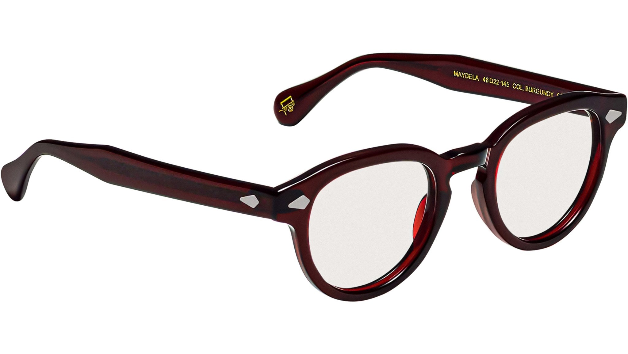 Occhiali da vista Moscot Maydela unisex con montatura rotonda in acetato borgogna e lenti demo. Linea: Originals. Codice modello: Maydela. Codice colore: 0221. Rivenditore autorizzato Moscot online. Gli occhiali vengono consegnati con custodia e accessori originali e sono coperti dalla garanzia ufficiale di 12 mesi del produttore.