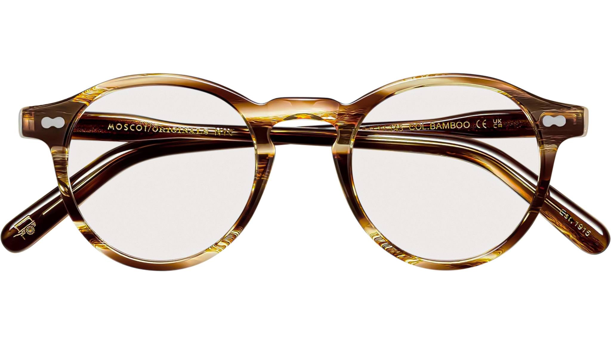 Occhiali da vista Moscot Miltzen unisex con montatura rotonda in acetato bambù e lenti demo. Linea: Originals. Codice modello: Miltzen. Codice colore: 0240. Rivenditore autorizzato Moscot online. Gli occhiali vengono consegnati con custodia e accessori originali e sono coperti dalla garanzia ufficiale di 12 mesi del produttore.