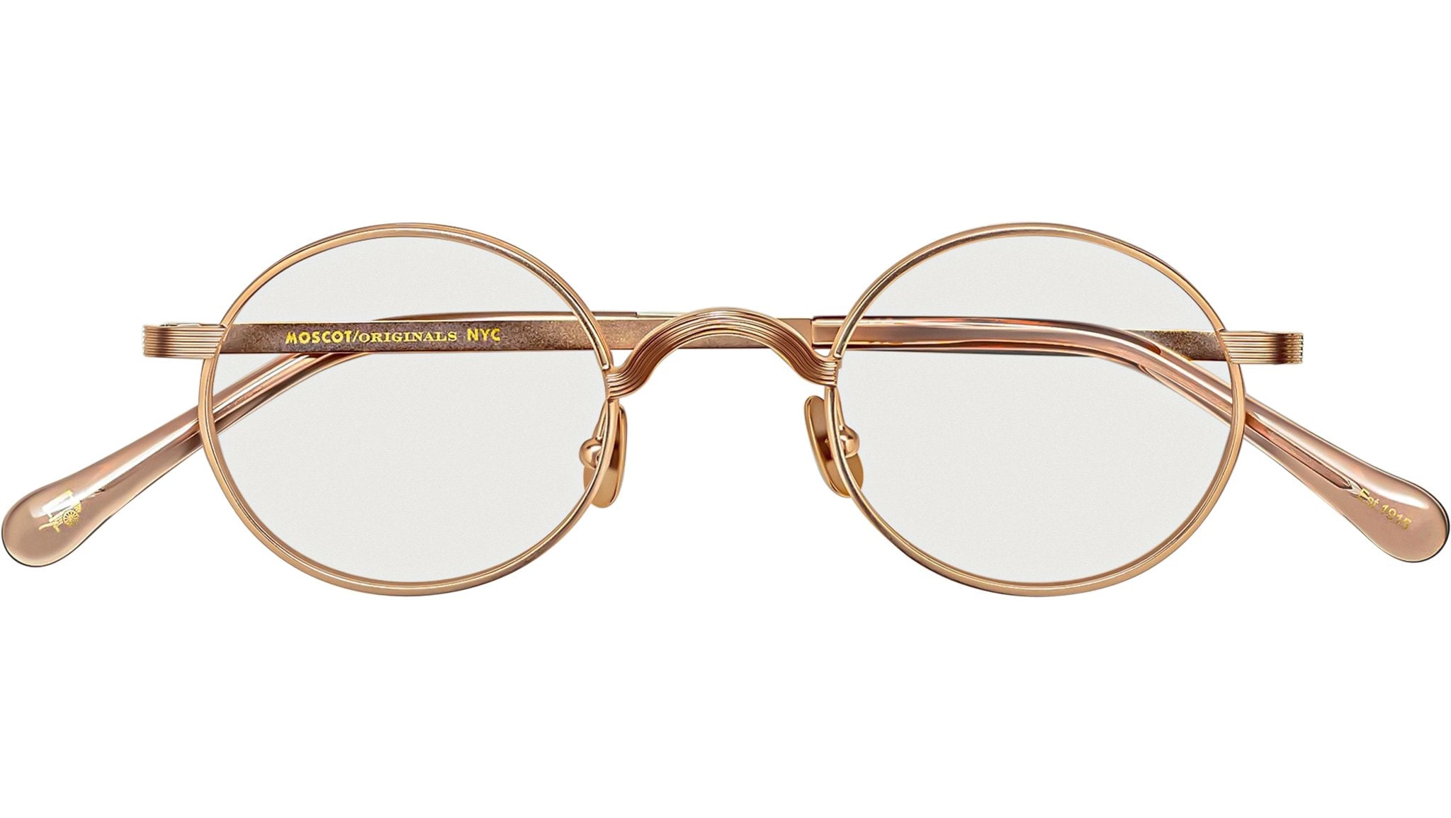 Occhiali da vista Moscot Moyel unisex con montatura rotonda in metallo rosa e lenti demo. Linea: Originals. Codice modello: Moyel. Codice colore: 2902. Rivenditore autorizzato Moscot online. Gli occhiali vengono consegnati con custodia e accessori originali e sono coperti dalla garanzia ufficiale di 12 mesi del produttore.