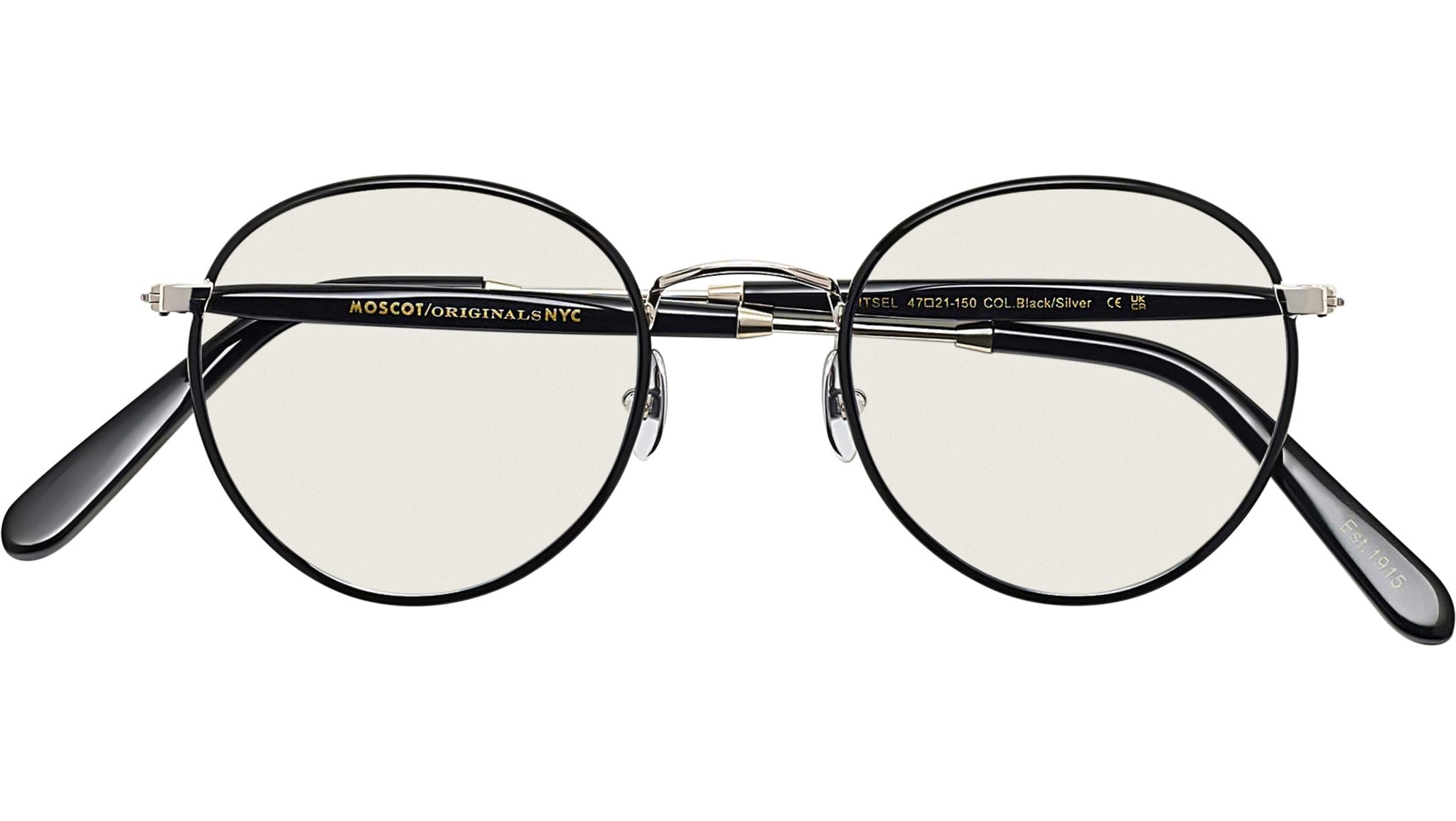 Occhiali da vista Moscot Pitsel unisex con montatura rotonda in acetato-metallo nero / argento e lenti demo. Linea: Originals. Codice modello: Pitsel. Codice colore: 0207. Rivenditore autorizzato Moscot online. Gli occhiali vengono consegnati con custodia e accessori originali e sono coperti dalla garanzia ufficiale di 12 mesi del produttore.