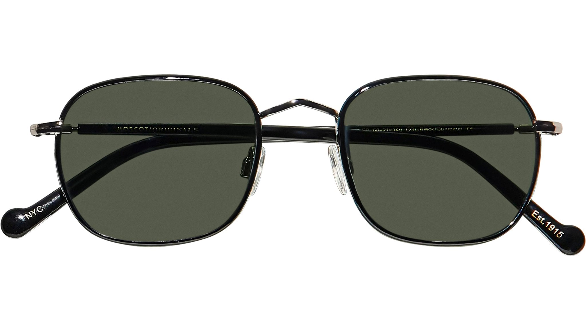 Occhiali da sole Moscot Schlep Sun unisex con montatura squadrata in metallo nero / canna di fucile e lenti verde G-15. Linea: Originals. Codice modello: Schlep Sun. Codice colore: 0203. Rivenditore autorizzato Moscot online. Gli occhiali vengono consegnati con custodia e accessori originali e sono coperti dalla garanzia ufficiale di 12 mesi del produttore.