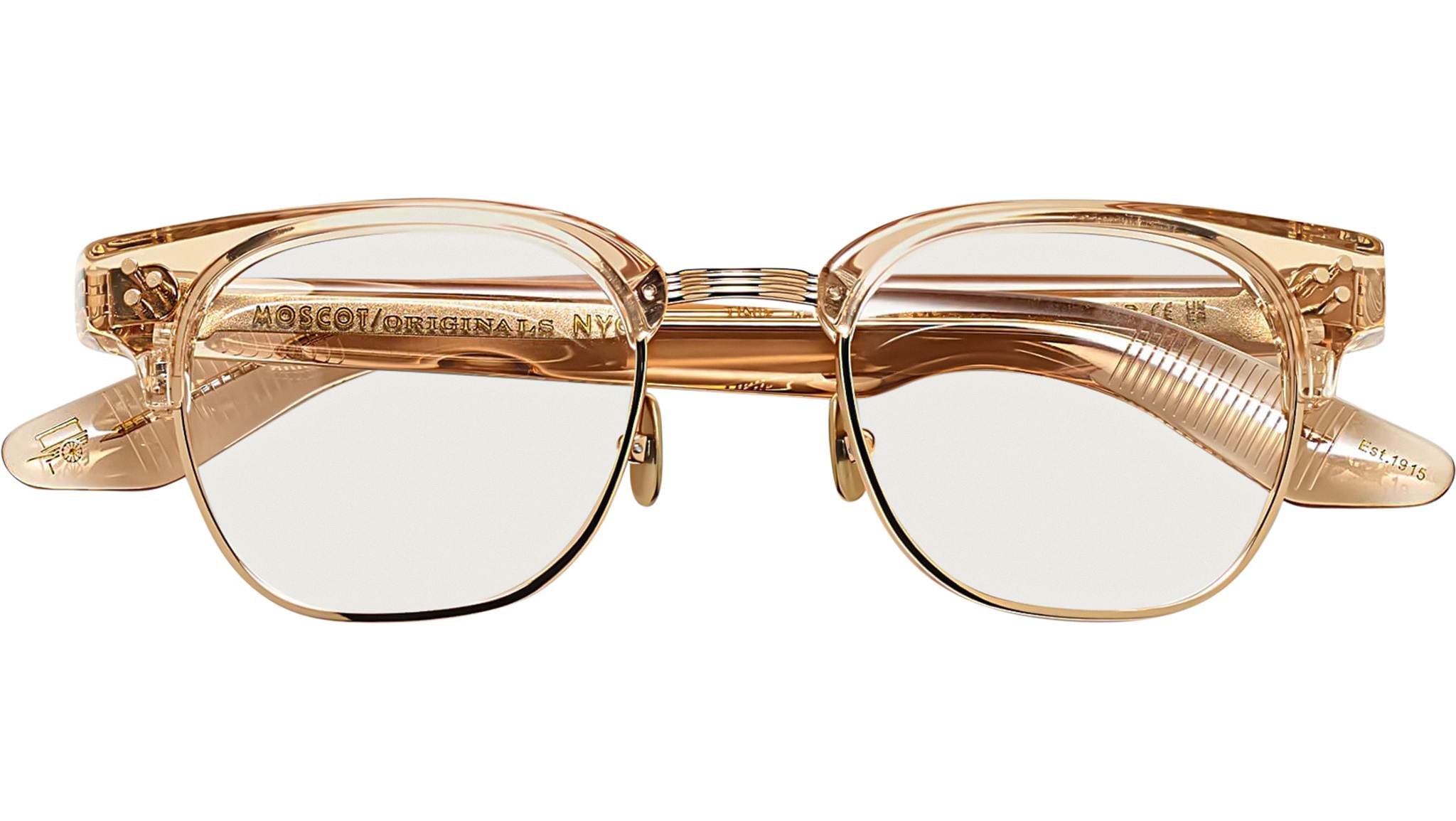 Occhiali da vista Moscot Tinif unisex con montatura rotonda in acetato cannella / oro e lenti demo. Linea: Originals. Codice modello: Tinif. Codice colore: 0320. Rivenditore autorizzato Moscot online. Gli occhiali vengono consegnati con custodia e accessori originali e sono coperti dalla garanzia ufficiale di 12 mesi del produttore.