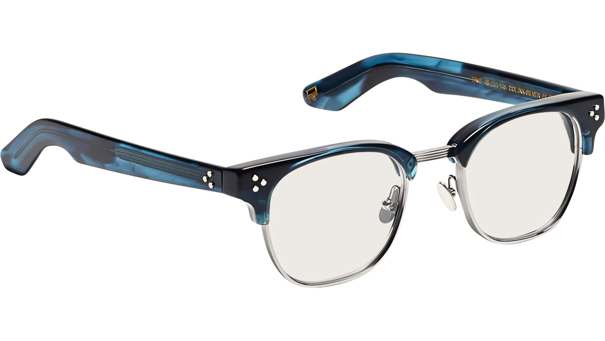 Occhiali da vista Moscot Tinif unisex con montatura rotonda in acetato inchiostro / argento e lenti demo. Linea: Originals. Codice modello: Tinif. Codice colore: 0862. Rivenditore autorizzato Moscot online. Gli occhiali vengono consegnati con custodia e accessori originali e sono coperti dalla garanzia ufficiale di 12 mesi del produttore.