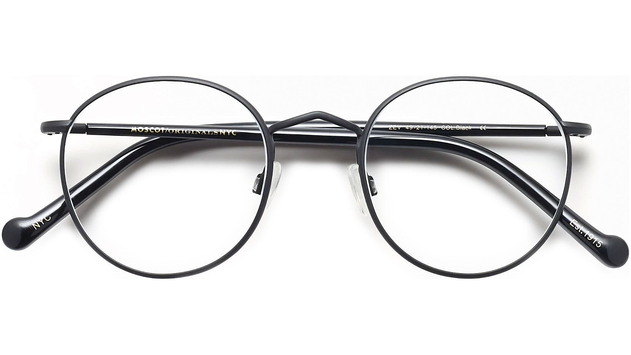Handcrafted using a combination of metal and Italian acetate. Features classic P-3 shape and Windsor-Rim inspired eyewire. Comfortable saddle nose bridge. Includes silicone nose pads. Moscot temple engravings.
