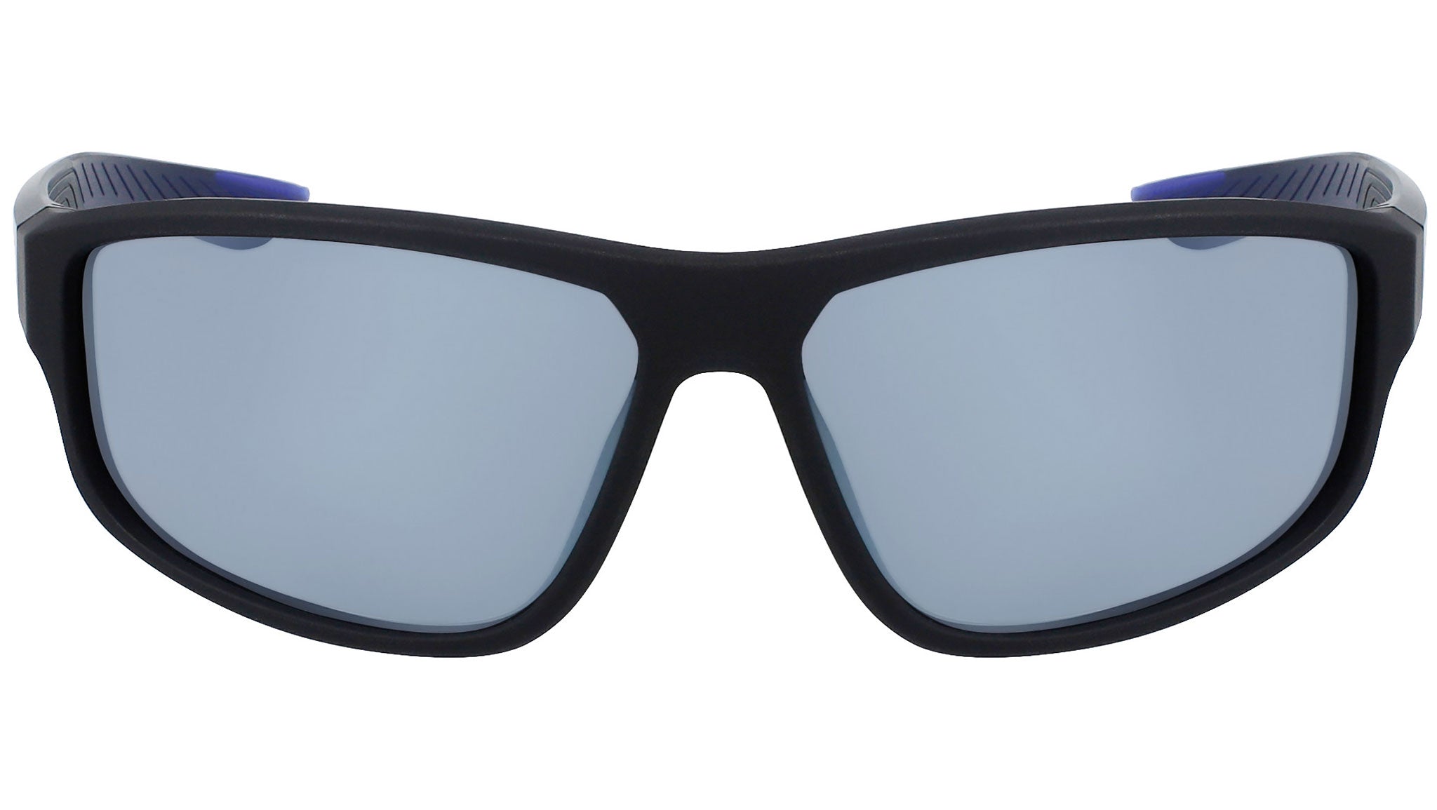 Nike Brazen Fuel line sunglasses model DJ0805-451 featuring matte crystal obsidian frame and silver and grey lens.