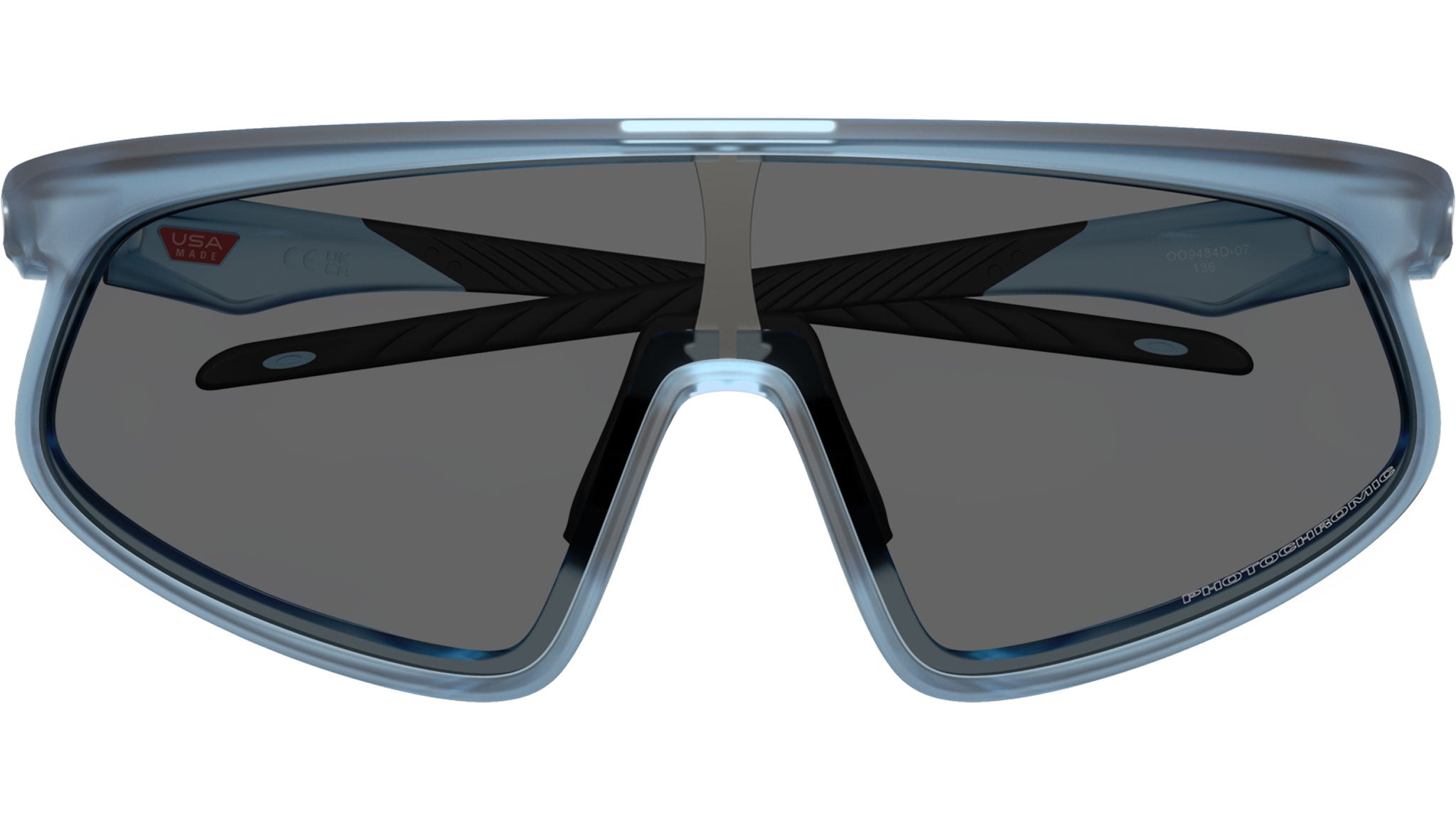 Occhiali da sole Oakley unisex modello OO9484D con montatura full rim opaco trasparente stonewash in nylon e lente in policarbonato fotocromatico da trasparente a nero iridium. Vestibilità a ponte basso. Linea: Sport Performance. Codice modello: 0OO9484D. Codice colore: 07. Rivenditore autorizzato online Oakley. Gli occhiali includono la custodia e gli accessori originali e sono coperti da una garanzia globale di 12 mesi.