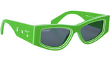 Gli occhiali da sole Andy sono un color block multistrato, la cui montatura frontale in acetato si distingue per il gioco di volumi. Questo occhiale è un pezzo di design. L'effetto finale è una scultura quadridimensionale: oltre ai volumi tridimensionali scolpiti sul frontale, abbiamo giocato con blocchi dalle tinte piene alternandole con quelle bianche, creando l’idea che le lenti siano amplificate, cioè più siano grandi. In questo modello troviamo il logo Off-White sotto forma dell’omino che nuota applicato sulle aste.