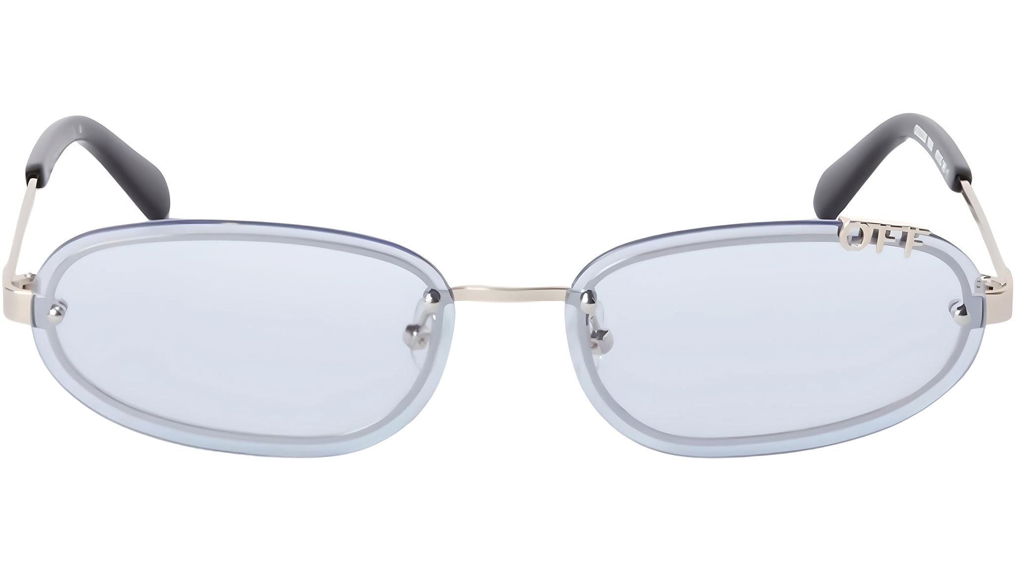 Occhiali da sole Off-White modello Miami codice colore 7640 con frontale in metallo metallo oro lucido / puntali neri e lenti cat. 2 in nylon azzurro. Rivenditore autorizzato Off-White Eyewear online. Gli occhiali vengono consegnati con custodia e accessori originali e sono coperti dalla garanzia ufficiale di 12 mesi del produttore.