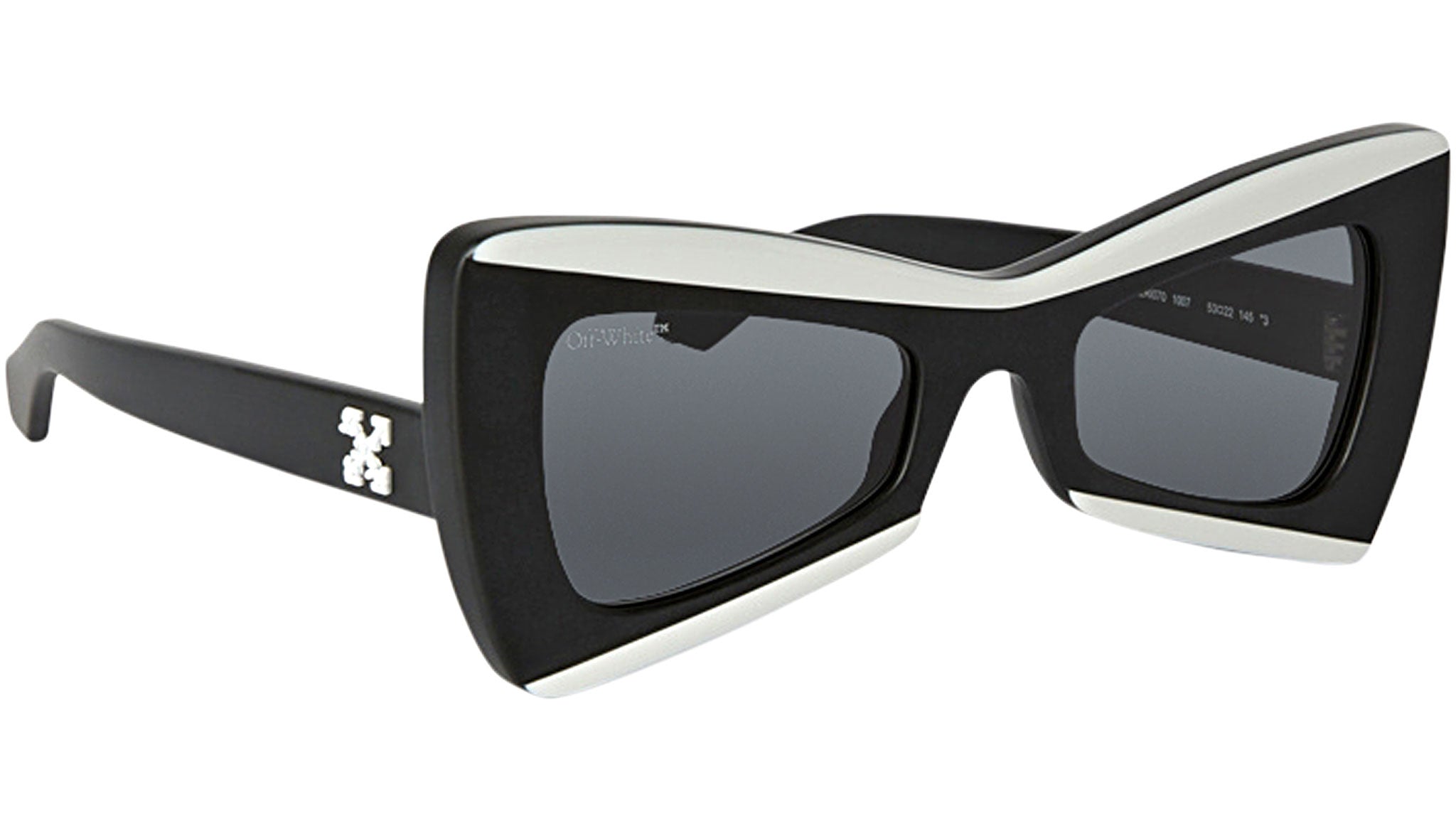 Il modello Nashville ha una forma una farfalla, geometrica audace e originale. Il design è impreziosito da una combinazione grafica di due diversi strati di acetato: il primo è bianco, mentre il frontale presenta diverse tonalità di colore, come sabbia, verde acqua e rosa. Le astine sono arricchite dal logo Off-White in metallo bianco opaco.