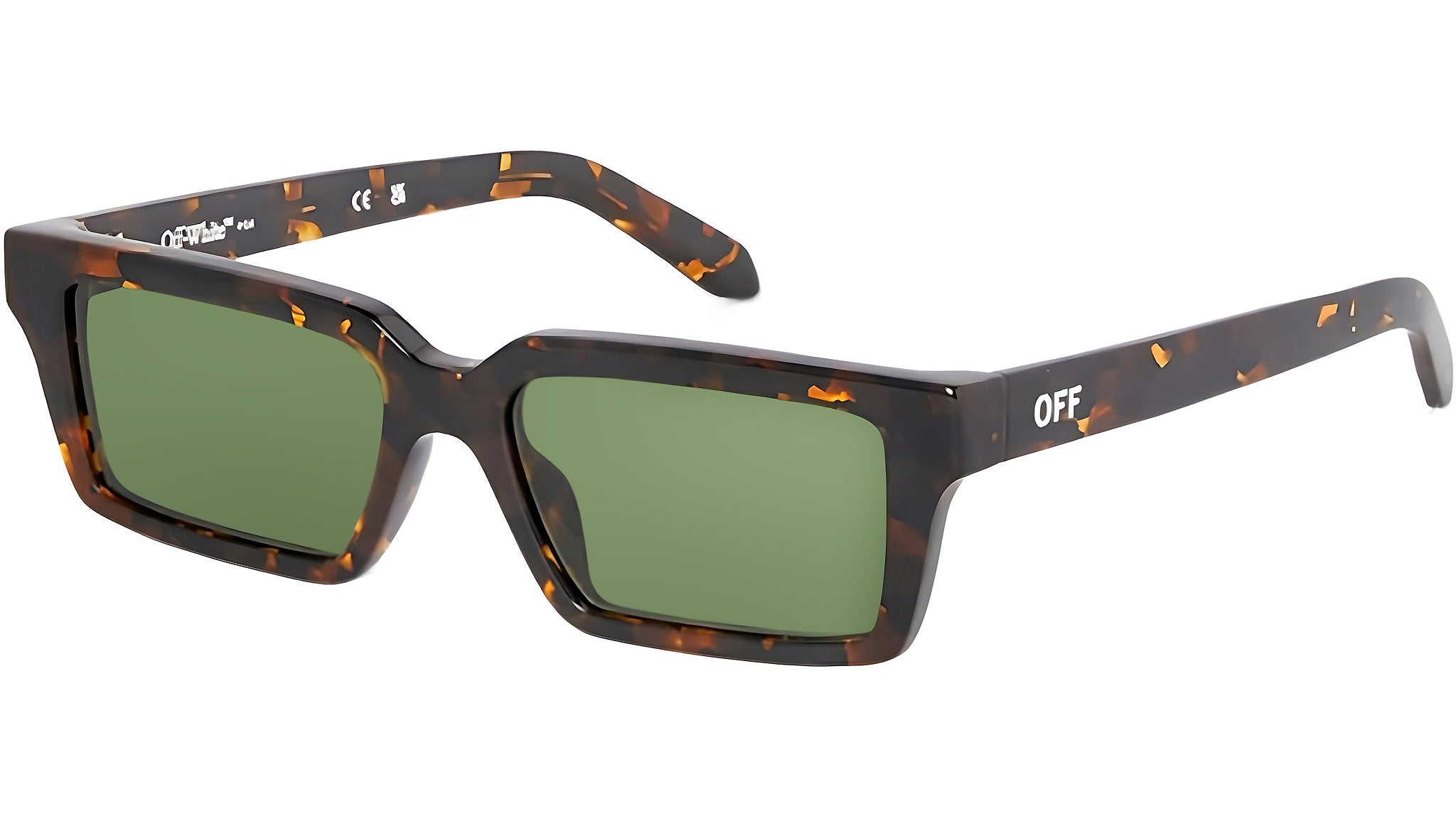 Occhiali da sole Off-White modello Warren codice colore 6055 con frontale in acetato tartaruga e lenti cat. 3 in polimero CR-39 verde. Rivenditore autorizzato Off-White Eyewear online. Gli occhiali vengono consegnati con custodia e accessori originali e sono coperti dalla garanzia ufficiale di 12 mesi del produttore.