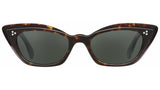 This chic and shallow cat-eye sunglass is inspired by early 90’s style icons. Bold, beveled richly hued acetate paired with dark, vibrant glass lenses evoke poise and glamour for the wearer. The exquisite detail of an exposed, embedded corewire finish the look with Oliver Peoples authenticity and attention to detail.