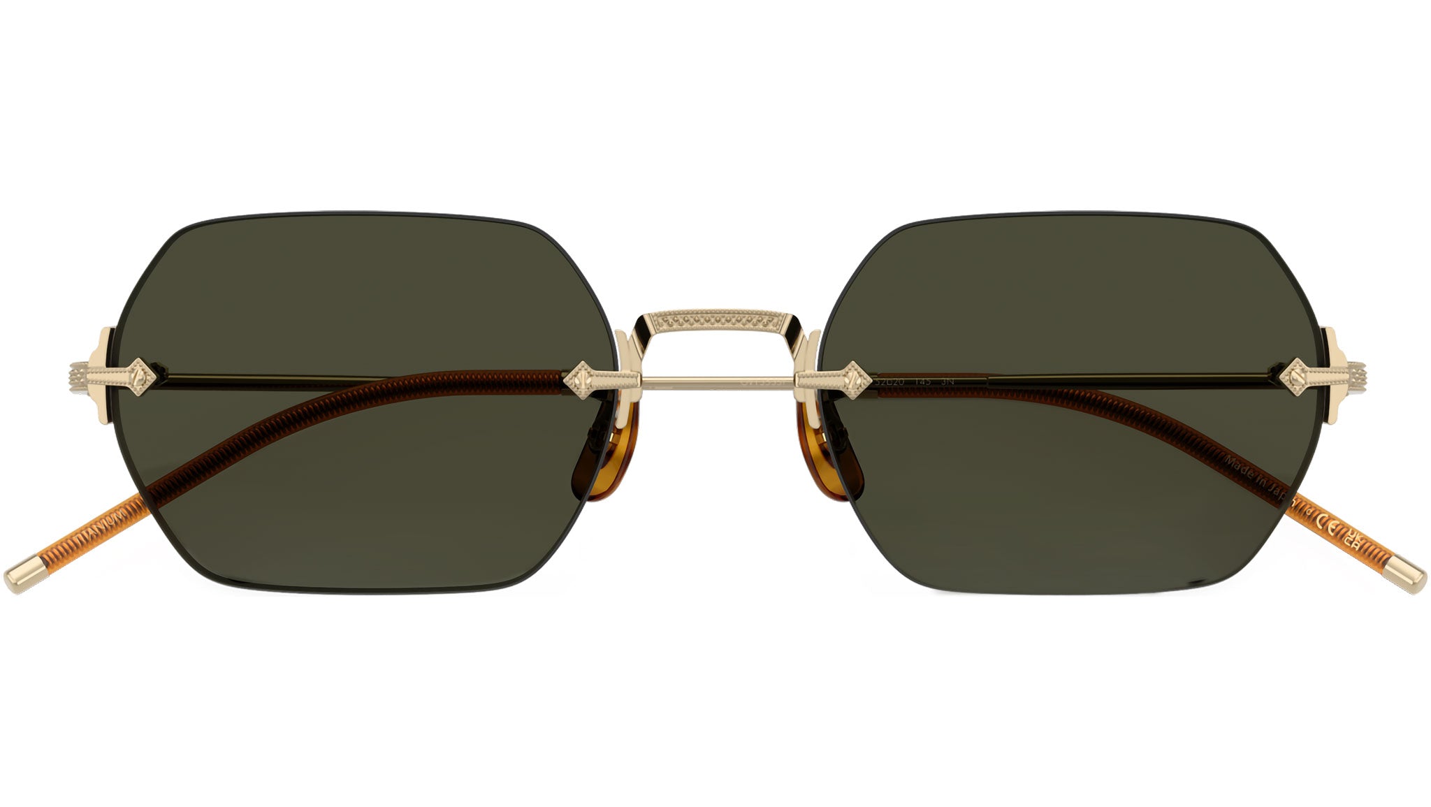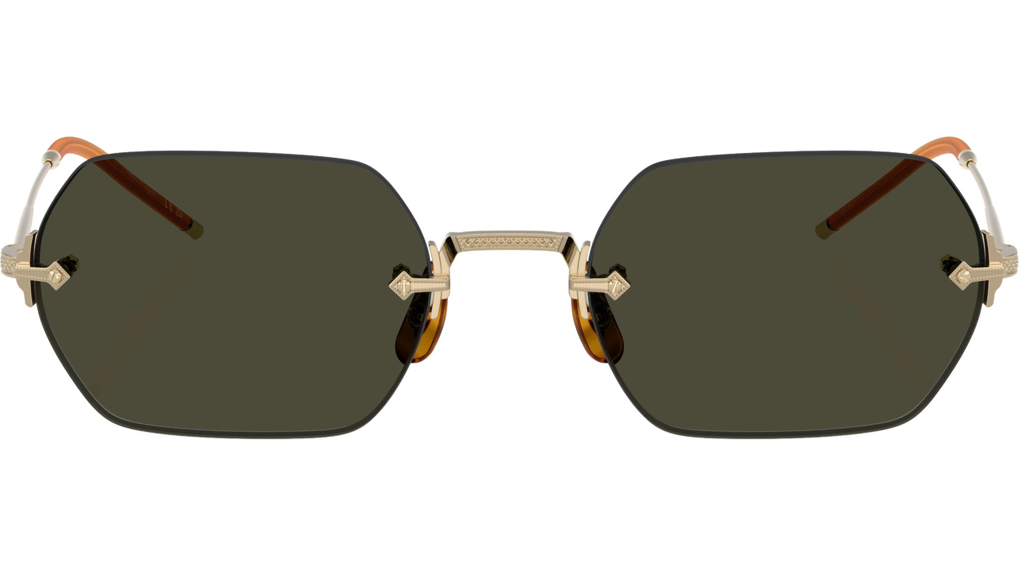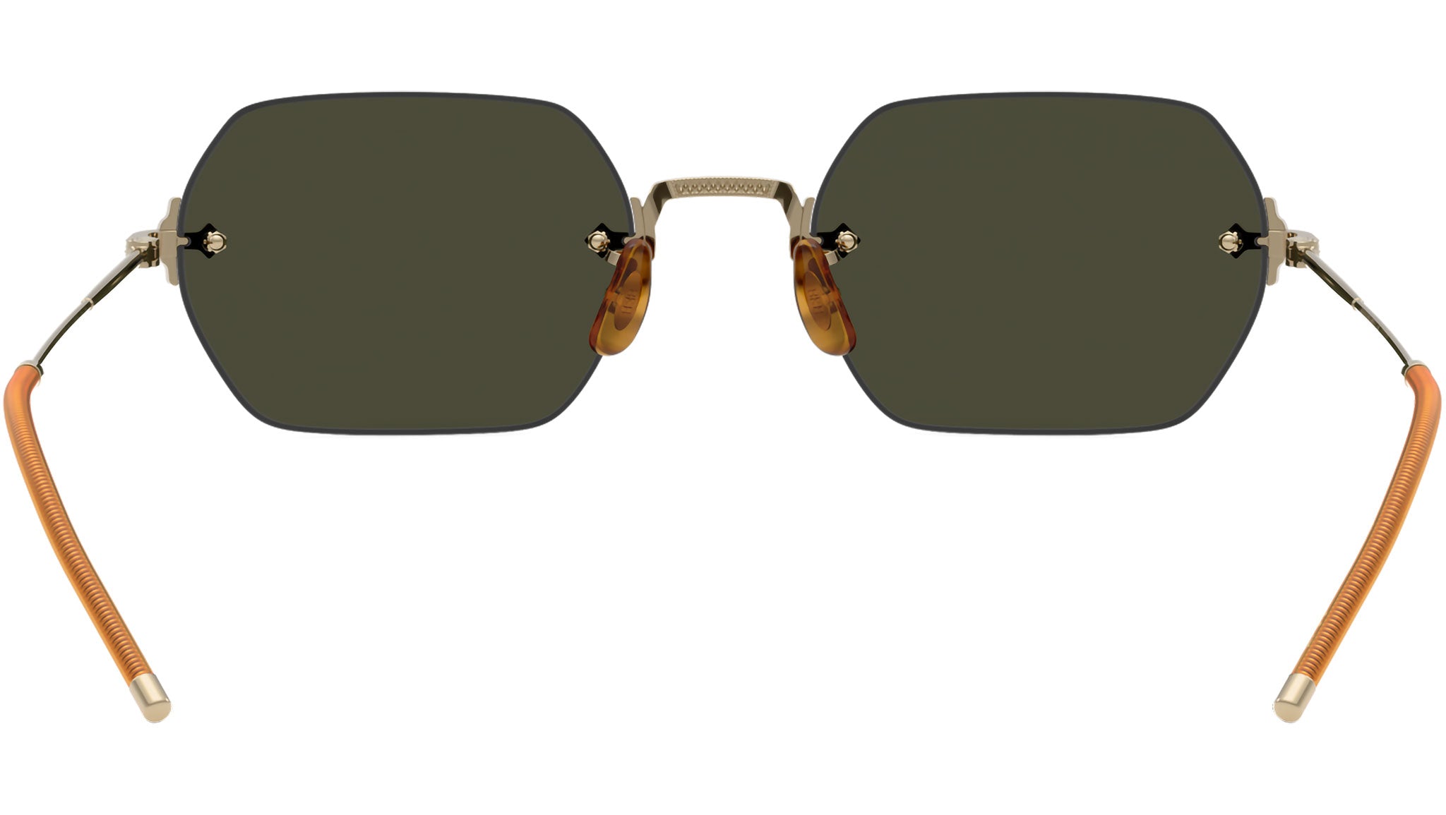 Occhiali da sole Oliver Peoples TK-13 OV1353ST 503571 unisex con montatura geometrica in titanio oro e lenti in CR-39 color verde G-15. Naselli regolabili. Linea: Essentials. Codice modello: 0OV1353ST. Codice colore: 503571. Made in Japan. Rivenditore autorizzato Oliver Peoples online. Gli occhiali vengono consegnati con custodia e accessori originali e sono coperti dalla garanzia ufficiale di 12 mesi del produttore.