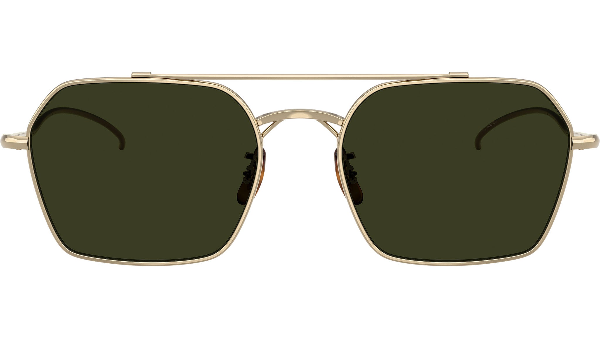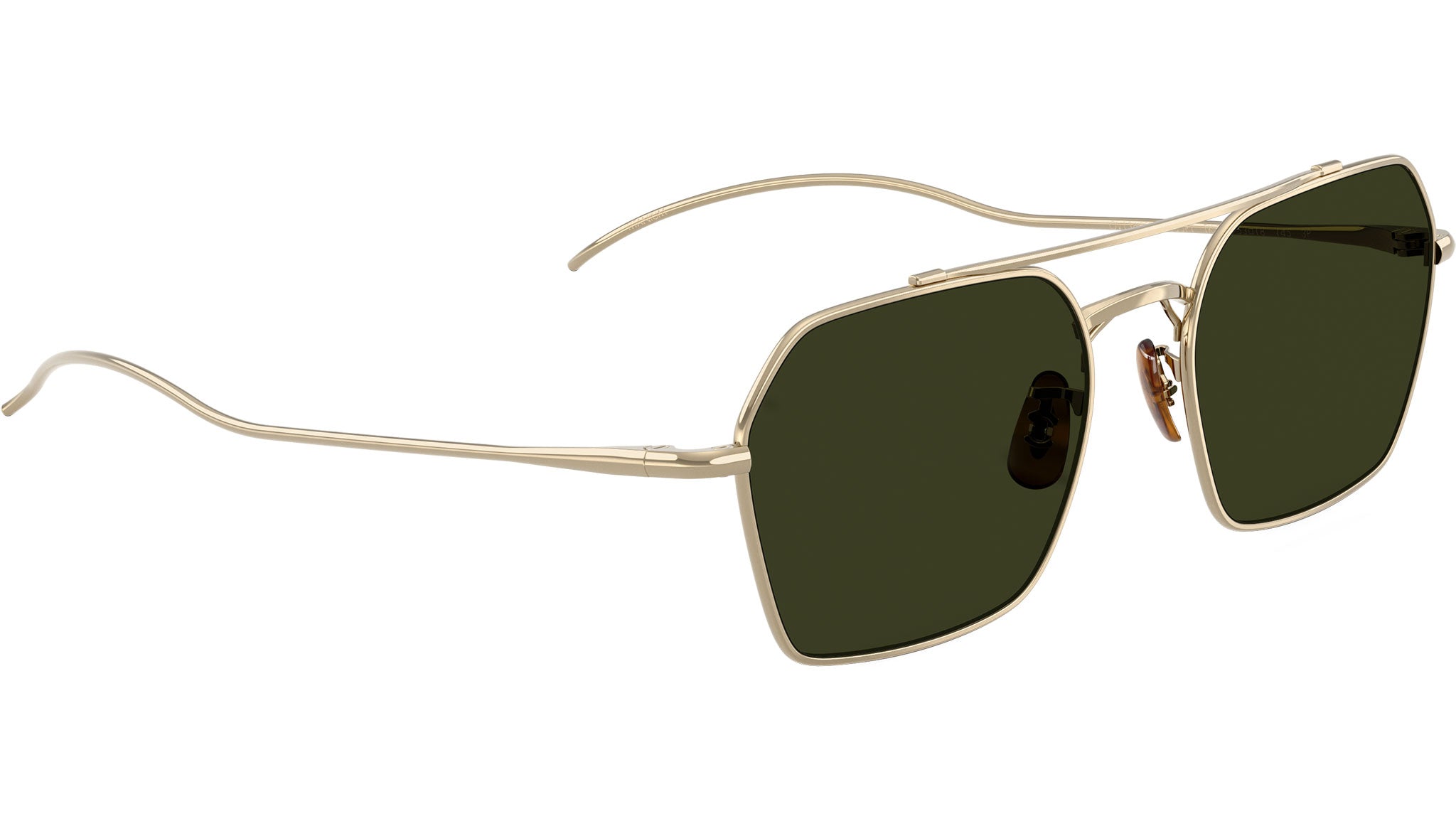 Occhiali da sole Oliver Peoples TK-15 OV1365ST 5035P1 unisex con montatura geometrica in titanio oro e lenti in cristallo color verde G-15 polarizzato. Naselli regolabili. Linea: Essentials. Codice modello: 0OV1365ST. Codice colore: 5035P1. Made in Italy. Rivenditore autorizzato Oliver Peoples online. Gli occhiali vengono consegnati con custodia e accessori originali e sono coperti dalla garanzia ufficiale di 12 mesi del produttore.