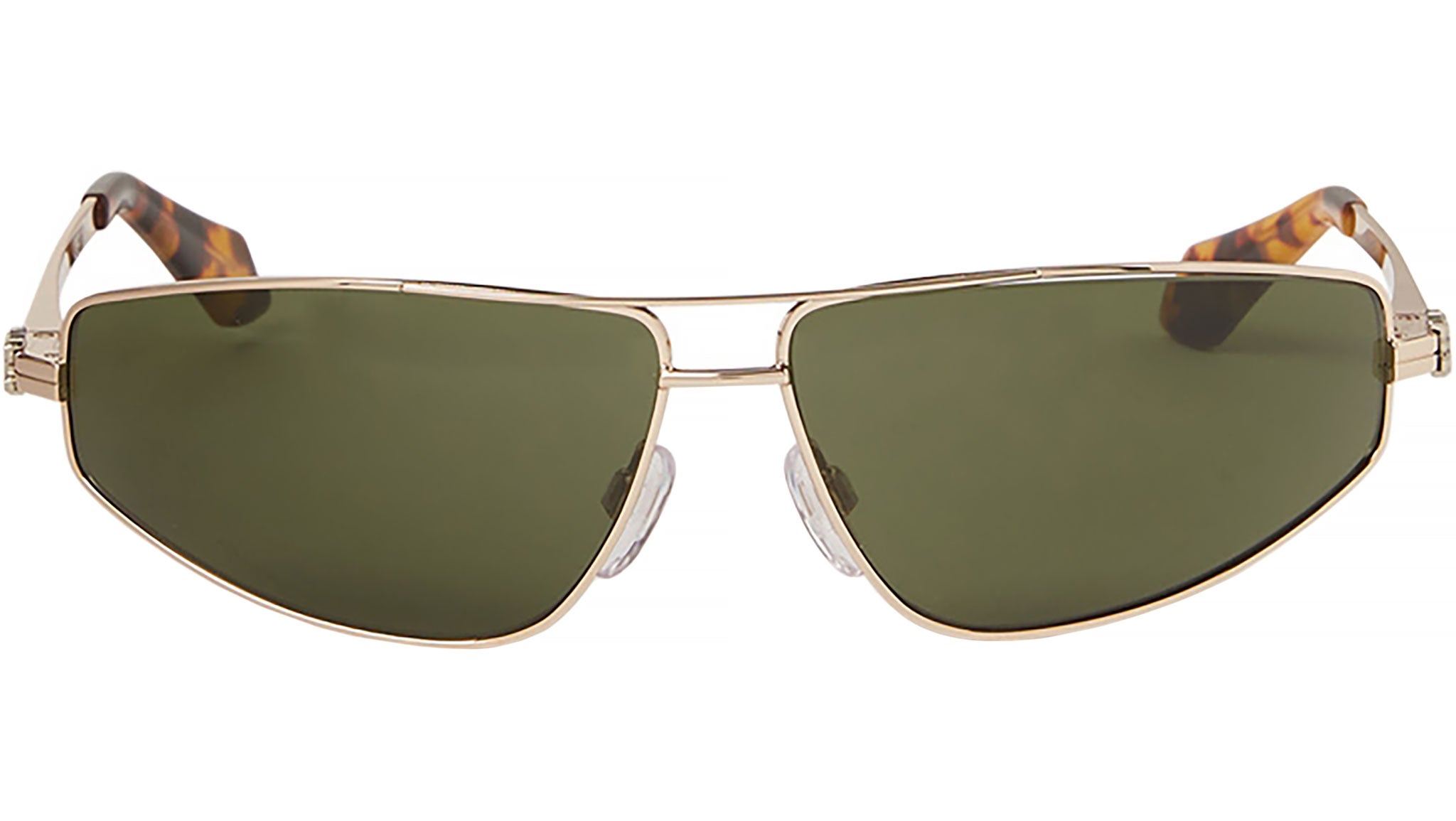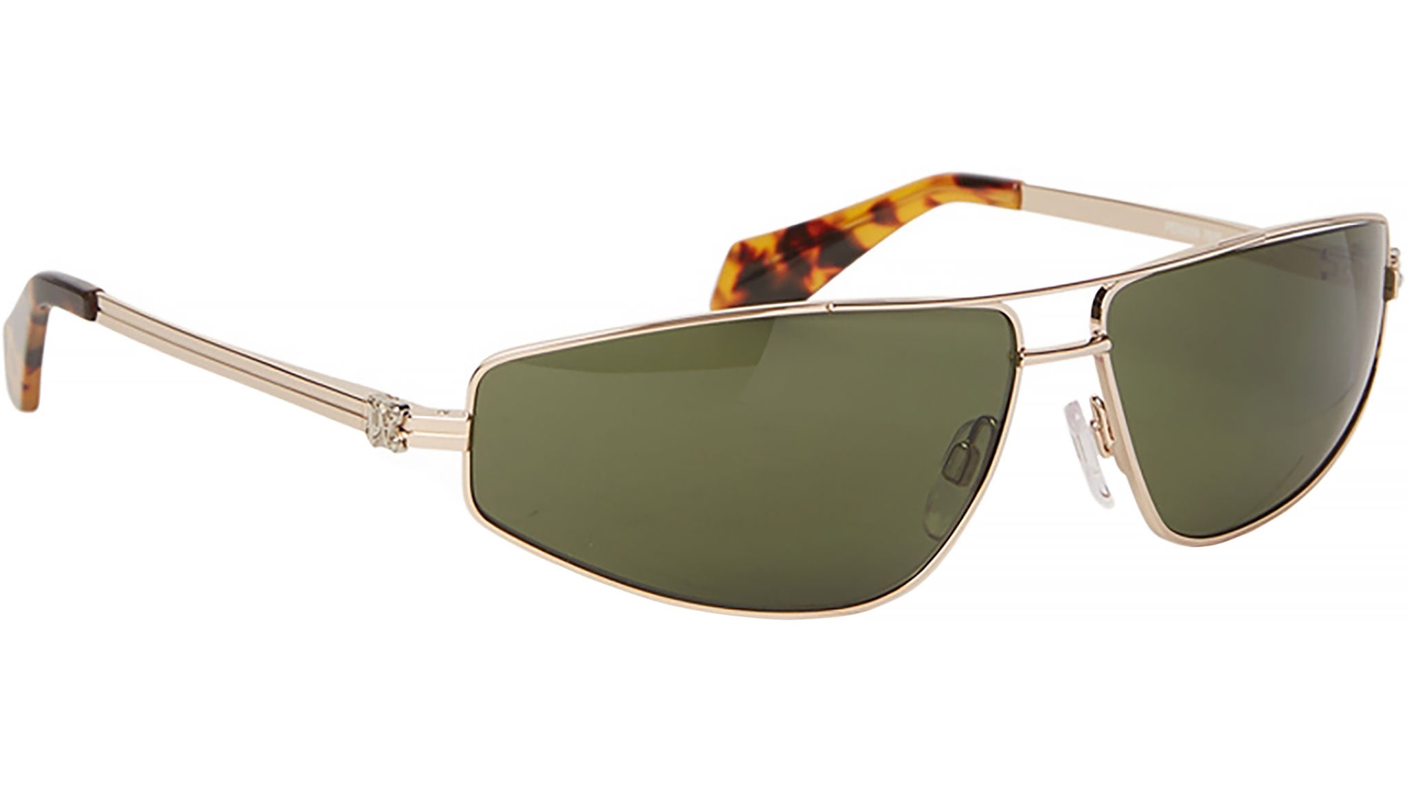Clavey è un modello Palm Angels caratterizzato da una sottile costruzione in metallo, per una montatura sottile dalle linee futuristiche, che assicura una vestibilità comoda e leggera, perfetta per l'uso quotidiano. Caratterizzato da un doppio ponte a forma allungata che incornicia il volto perfettamente, Clavey è la rappresentazione di uno stile sofisticato, che mette in risalto lo spirito raffinato del brand. Le aste sottili rendono omaggio alle iconiche tute della linea di abbigliamento Palm Angels e sono arricchite dal logo capovolto in rilievo, realizzato in metallo a doppio contrasto.