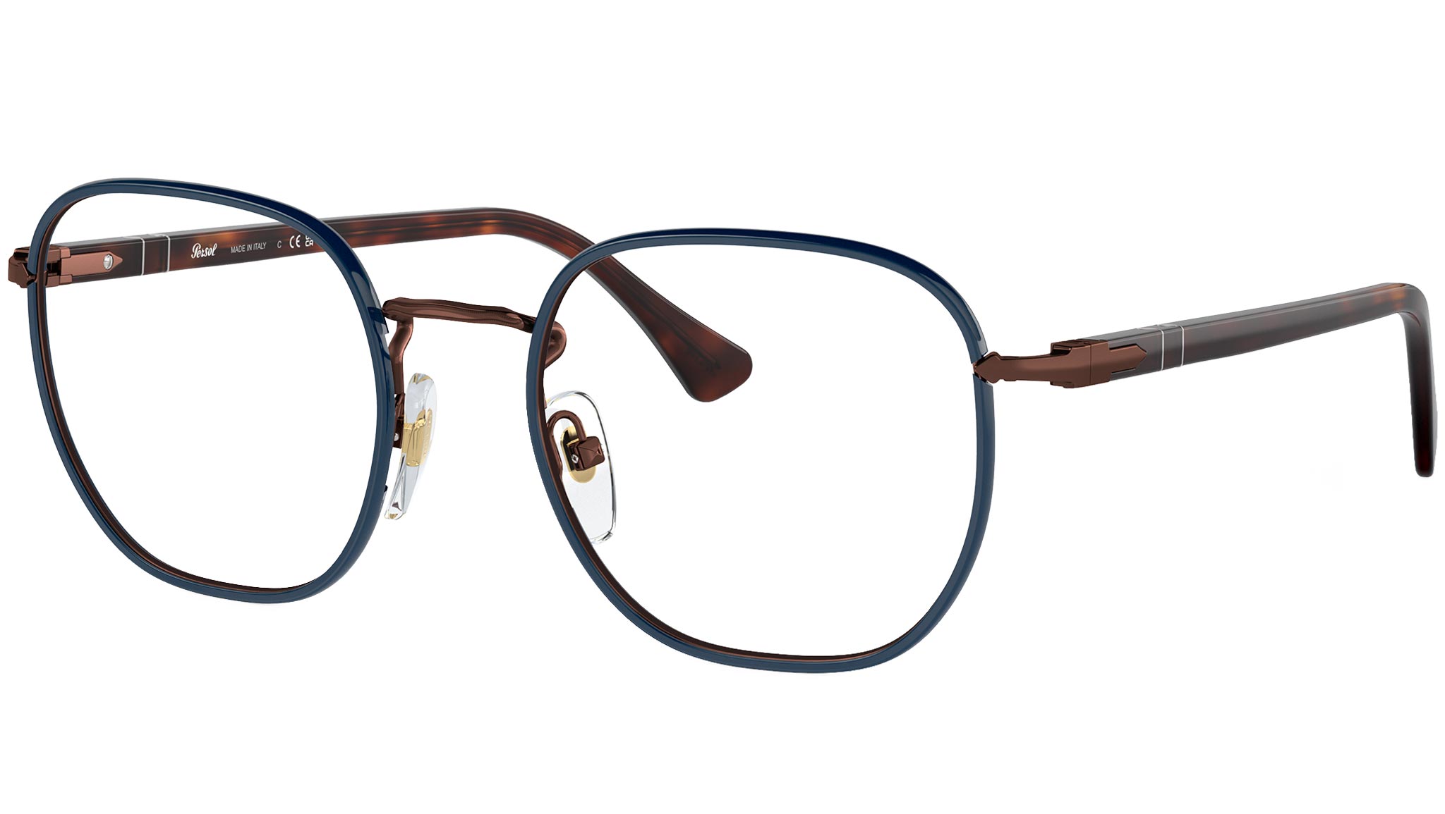 Montatura da vista Persol PO1014VJ codice colore 1127 in metallo marrone / blu con lenti demo. Persol fonde in modo armonioso estetica e tecnologia. Dedica un'attenzione meticolosa a ogni dettaglio, nel coniugare stile distintivo e soluzioni pratiche. Guidata da una passione incrollabile per il perfezionamento delle abilità artigianali e da una ricerca incessante in innovazione, Persol incarna la vera qualità italiana. Il suo nome evocativo significa 'per il sole', testmonianza viva del ricco patrimonio di maestria superiore ed eccellenza, all'apice della manifattura italiana artigianale. Rinomata per il suo design senza tempo e per la sua arte nel creare occhiali unici, il marchio è diventato una delle scelte più amate nell'ambito del cinema.